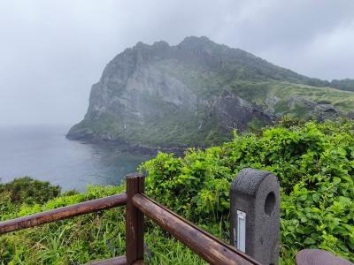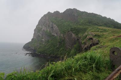 遊歩道の途中から見えた城山日出峰。高さ180メートルあるそうです。オプ...