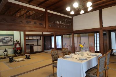 二間続きになっていて、和洋折衷です。明治時代のシンプルなシャンデリアや...