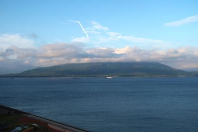 ビューポイントからの素晴らしい眺め。正面に見えるのが桜島です。ただ、朝...