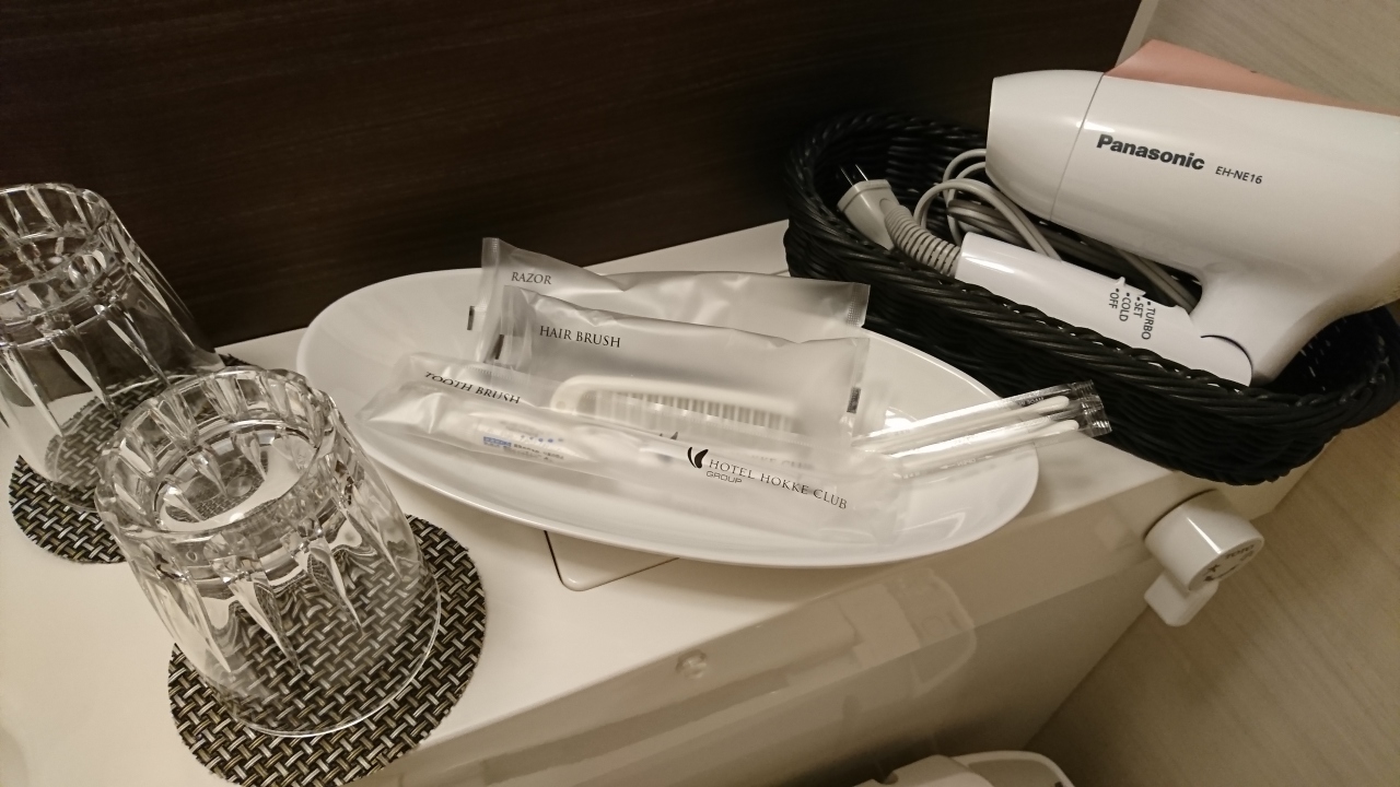 社員旅行で訪れました。ビジネスホテルですが、客室は比較的広めで設備もとても新しくきれいな感じでした。ホテルの目の前にコンビニ(セイコーマート・ローソン)があるのが便利です。すすきのまでは少し歩きますが気にならない程度です。朝食バイキングも種類が色々ありました。皆さんコーヒーをテイクアウトしていました。