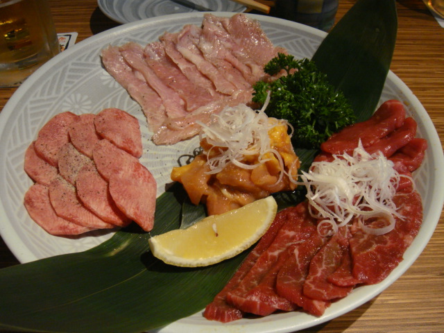 ビールで乾杯して、牛タン、骨付きカルビ、サンチユなどいつもメニューを注文した。キムチやその他のサイドメニュー10皿ほどでてきたが、無料だ。