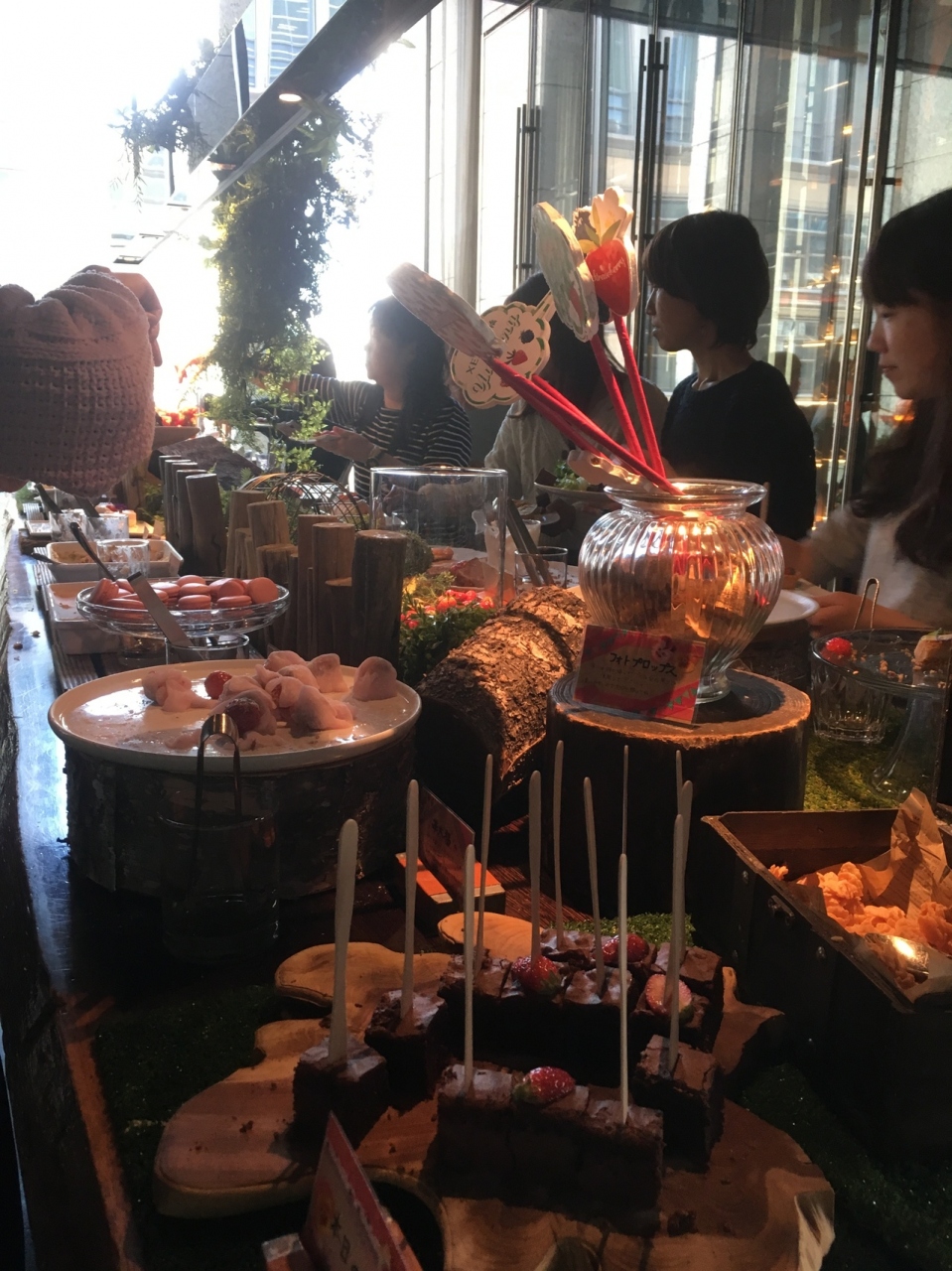 人気のストロベリーブュッフェのランチは平日でも満席でした。
