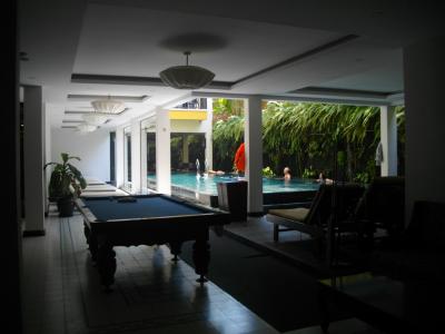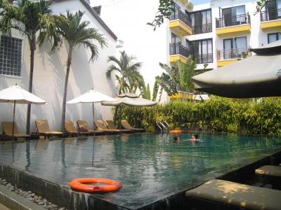 旧市街まで徒歩5分、という抜群のロケーション。道路に面した間口は狭いが、奥に広い。ビルの高層建屋とコテージタイプの低層建屋があり、小さいがプールが2つ、中庭がある。今回は、コテージタイプに宿泊した。ホテル内は静かで、快適に過ごせる。施設全体は、少々古く、HPの写真とは印象が異なるが、掃除が行き届き、くつろぐことができる。朝食はブッフェスタイルで、品数があり、おいしい。旧市街にレストランがたくさんあり、食事には困らない。ホイアンには、スーパー、コンビニはないが、近くに個人商店の雑貨屋があり、ビール、水等を安く買うことができる。