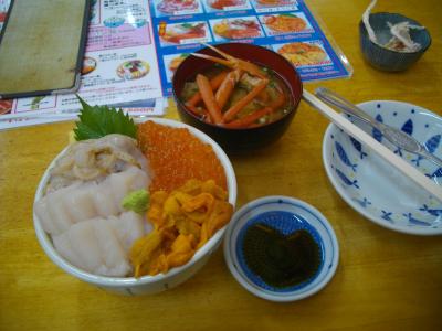 小樽駅前の三角市場内にある食堂で、朝から営業している。うに、イクラなどから3種を選んで普通サイズが2000円のわがまま丼がウリ。うに、イクラ、ホタテの3色を注文した。おいしい朝食を食べられた。GoToトラベルの地域共通クーポン使用可。