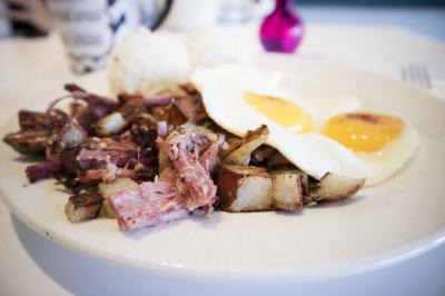 夫はコーンビーフの朝食を、私と息子はアサイーボウルをいただきました。
