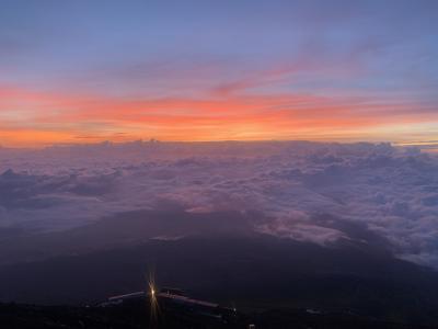富士山登山の際に御来光を見に行くのに、山頂から一番近い山小屋が楽かと思い他の山小屋よりツアー料金は高かったですが御来光館指定のツアーに申し込みました。山小屋到着は20時を過ぎていて21時消灯なので急いで夕食を食べる感じでした。ハンバーグ弁当で空腹のためかとてもおいしく感じました。寝床は寝袋で隣の方とは白い布で仕切られていていちよ見えない感じでした。山小屋ぽくっておもしろかったです。翌朝2時半に出発して山頂に向けて出発しましたが山頂が強風のために山小屋まで引き返してきました。御来光は山小屋の前から見ることができて、再度4時半に山頂に向けて出発して富士山に登頂できました。この八合五勺の御来光館に泊まらなければ時間的に登頂はできなかったと思うので本当に御来光館にして良かったと思います。スタッフの方もやさしい感じでした。