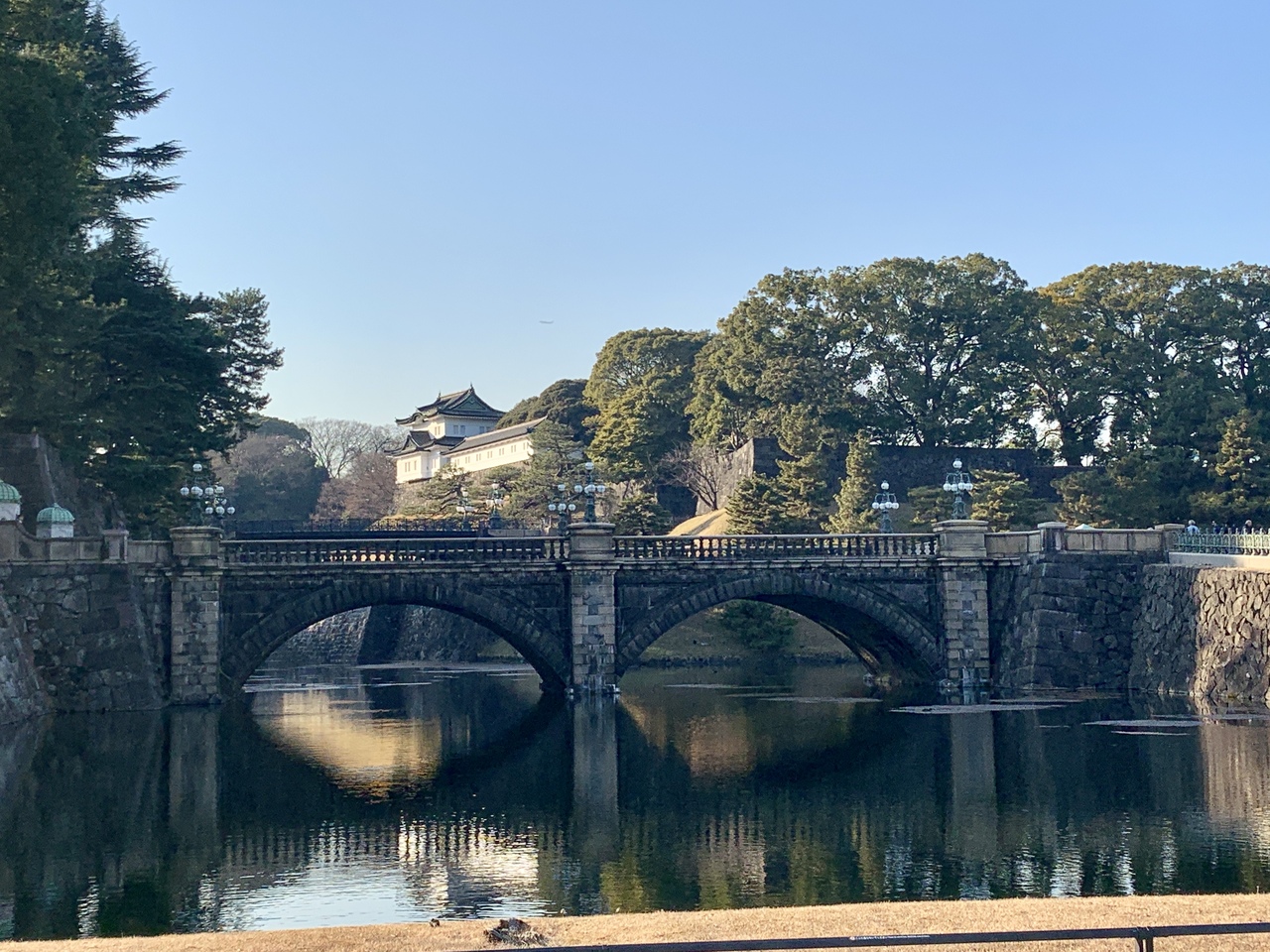 皇居正門前には2つの橋が架かっており、広場から見て奥側にある鉄橋が「正門鉄橋」で手前の橋が「正門石橋」です。正式には「二重橋」とは「正門鉄橋」のことを指しています。- 旅行時期