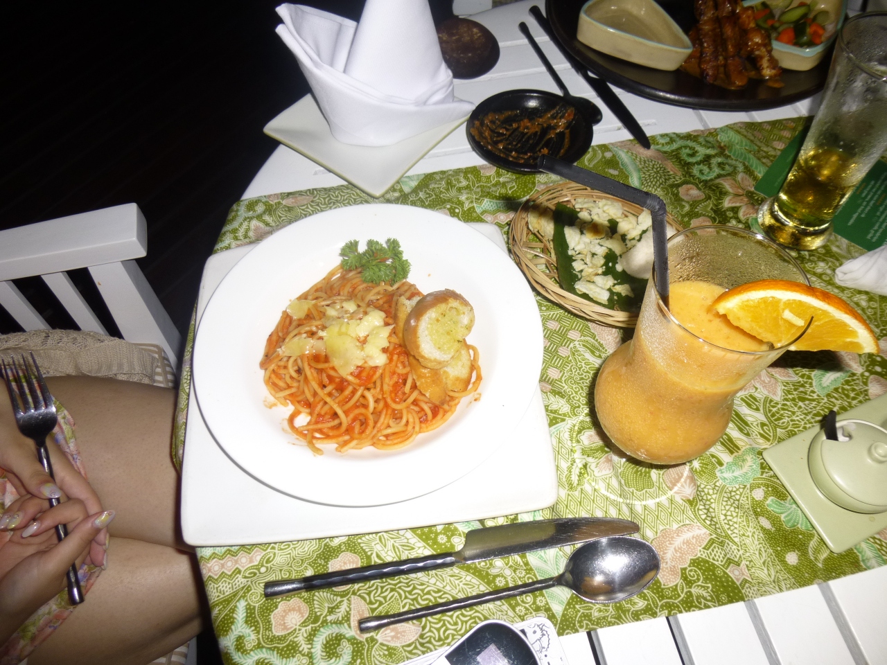 インターコンチネンタルリゾートに宿泊した際に、夜遅くでも食べれたということで利用しました。ミーゴレンを注文しましたが、多少辛かったです。娘はパスタを注文してそれぞれドリンクを頼んでふたりで5,000円くらいでした。