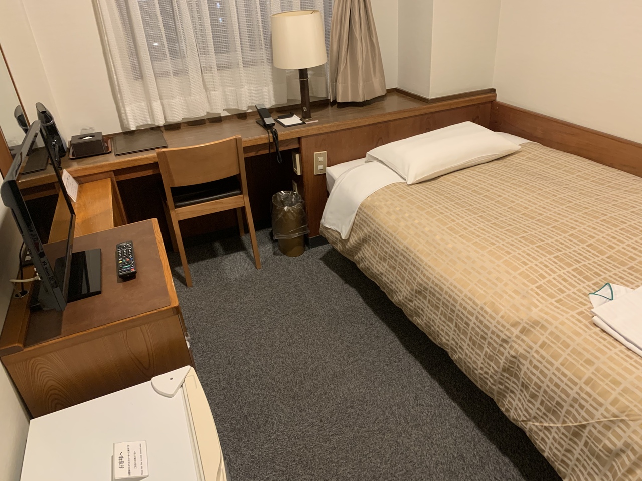 佐賀駅の南口にあるため、まわりには飲食店が多くて夕食には困りませんでした。室内は大きなベッドとテレビがあるだけですが、エアコンやWi-Fiもちゃんとしていてとても快適です。アパホテルは、コスパが良くて機能的で便利なので良く利用します。