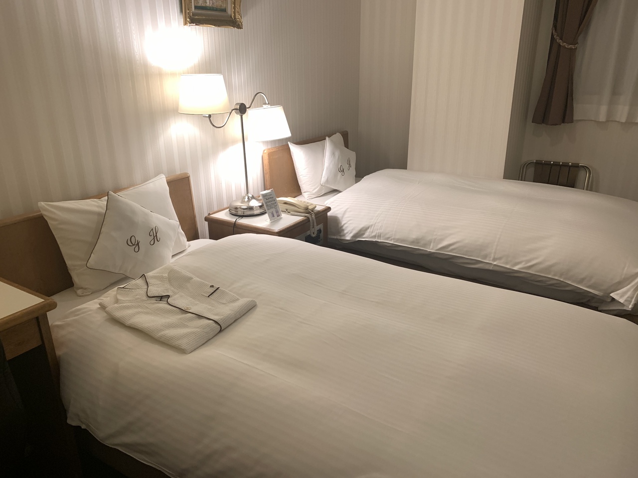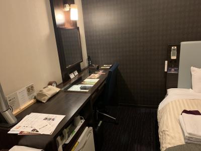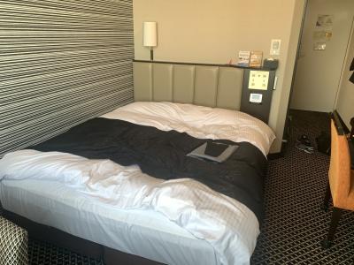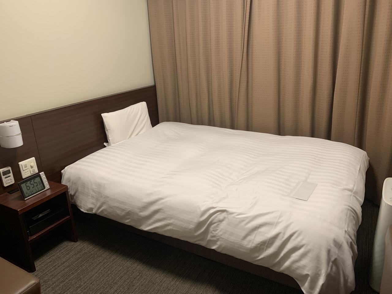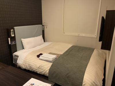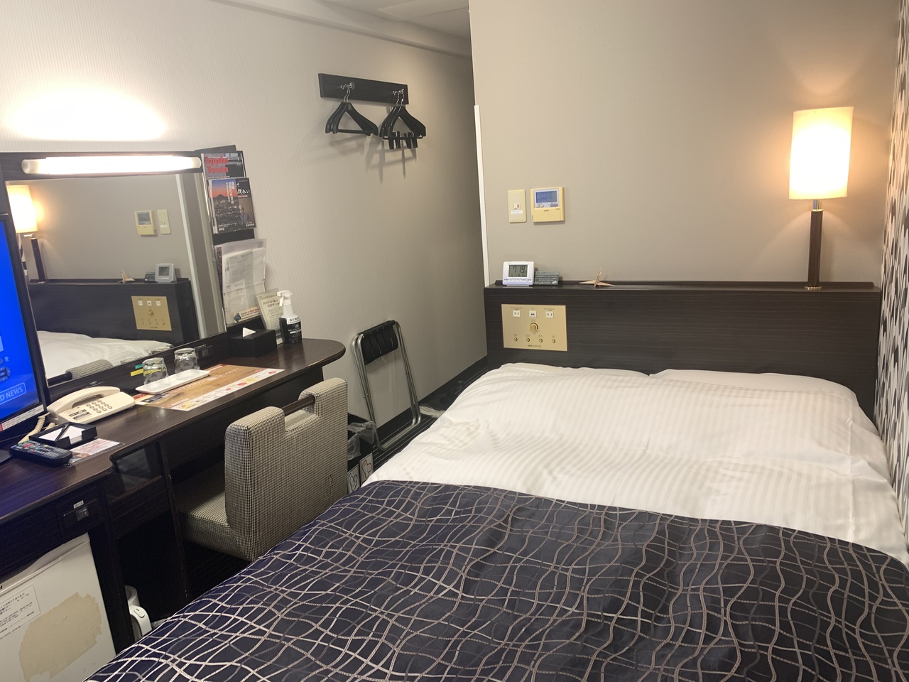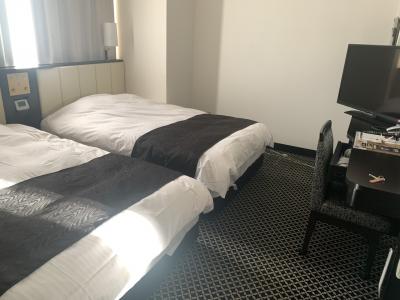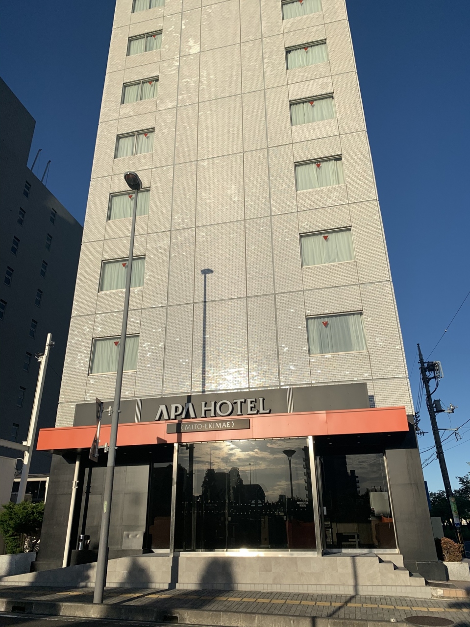 水戸駅からすぐのアパホテルです。アパホテルだけあって、清潔感があり機能的な部屋の作りです。シングルで予約したけど、ツインの部屋に変更してくれました。フロントにビールサーバーが置いてあり、200円で生ビールが飲めるサービスがあります。駐車場はないので近くのコインパーキングに自分で探して駐めるようになります。駐車場は24時間600円が相場です。