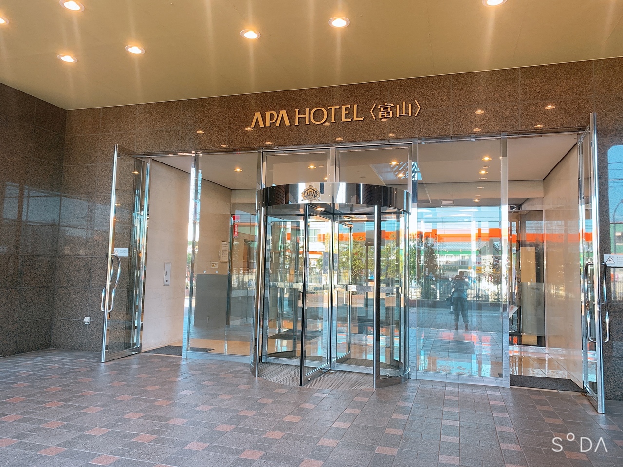 富山駅から車で5分くらいの所にあります。立体駐車場があり駐車場代が無料でしたし「コロナの負けるなキャンペーン」中でコスパほとてもいいです。部屋もアパホテルだけあって快適な作りになっています。ホテルの裏にアパホテル系列の天然温泉のスパがあり無料で入れます。