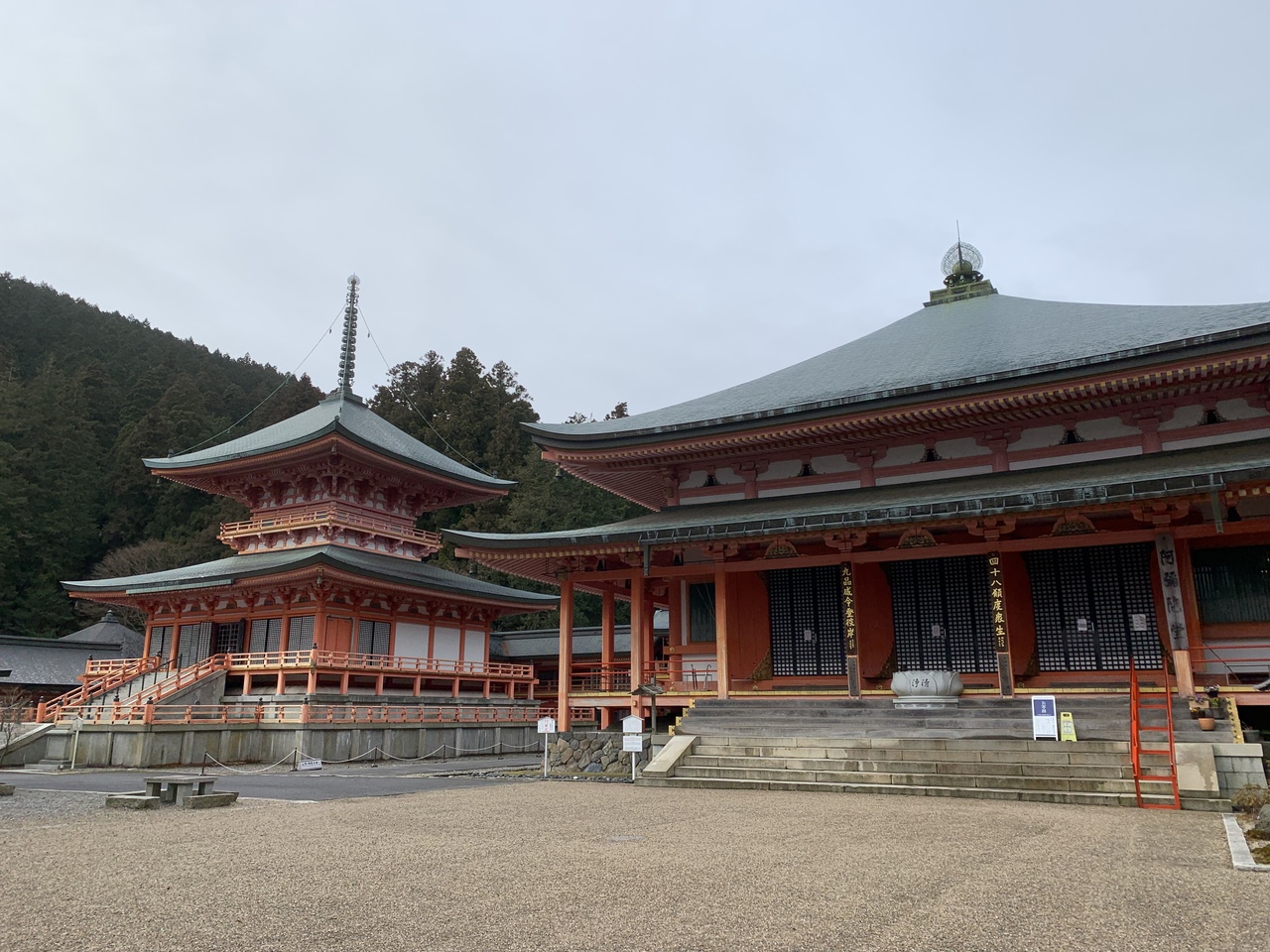 延暦寺で東塔、西塔、横川とあるうちで東塔に行きました。田の谷峠ゲートから比叡山ドライブウエイを通り延暦寺バスセンターに車を停めました。国宝であり延暦寺の総本堂である根本中堂は2026年まで10年をかけた大改修中で、外観はおおわれていて見えなかったですが改修の工事の様子が見られるようになっていました。シーズンオフのためかほとんど観光客の人がいなく、ゆっくりとお寺の中を散策されて気持ち良かったです。