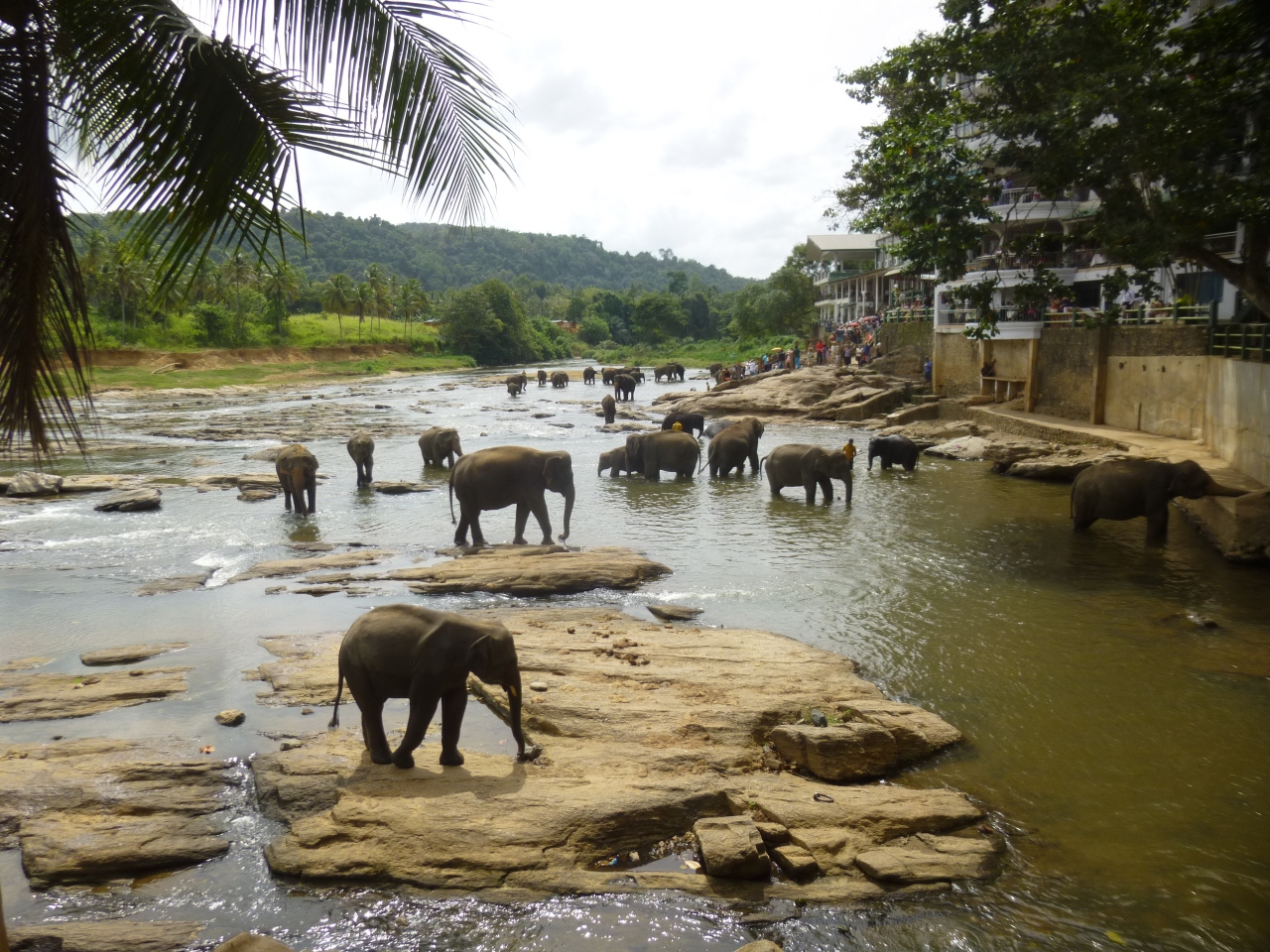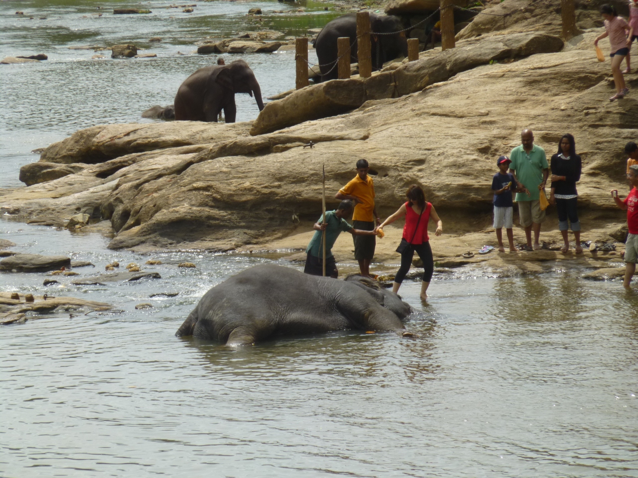 ジャングルで親をなくしたり、はぐれてしまった子象などが100頭ほど保護している施設でミルクを飲む姿や川で水浴びしている姿が見られます。象の水浴びは近くのホテルのレストランでランチをしながら見ることができ混雑を避けてゆっくりとみることができ、象も近くまでやってきてバナナなどを手渡しで食べさすことが出来ました。