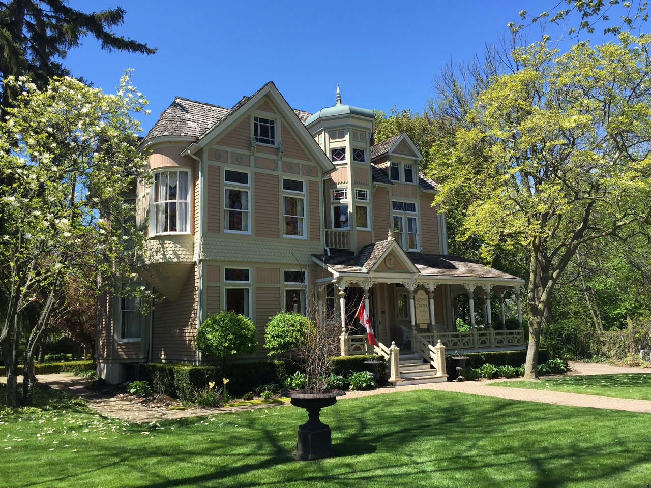 ナイアガラフォールズからナイアガラパークウエイを40分ほど北上したナイアガラ川の河口にある、ビクトリア調のおしゃれな建物が立ち並ぶ美しい街。