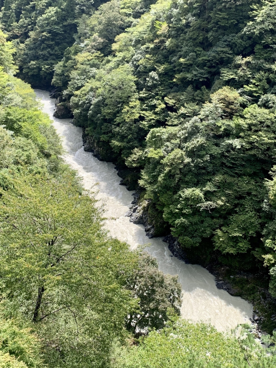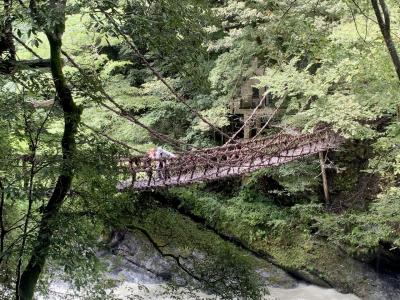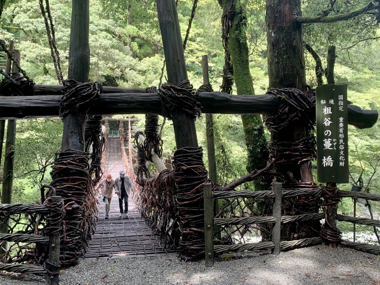 高知から徳島に向かう途中で立ち寄りました。平家伝説が残る秘境で祖谷川にかかる「祖谷のかずら橋」など他では見らない名所もあります。「祖谷そば」を食べるために行った蕎麦屋さんのテラスから見下ろすⅤ字型に切り込んだ断崖絶壁の渓谷は眼がくらむほどの絶景です。