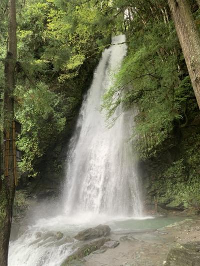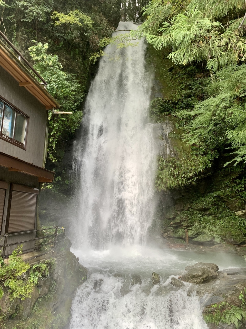 祖谷のかずら橋を渡ったところにあった落差40mの滝。前日の台風の影響で水量が多くてとてもダイナミックでした。祖谷に落ちのびた平家の落人が都をしのんで滝の前に集まって琵琶を奏でたという伝説が名前の由来だそうです。