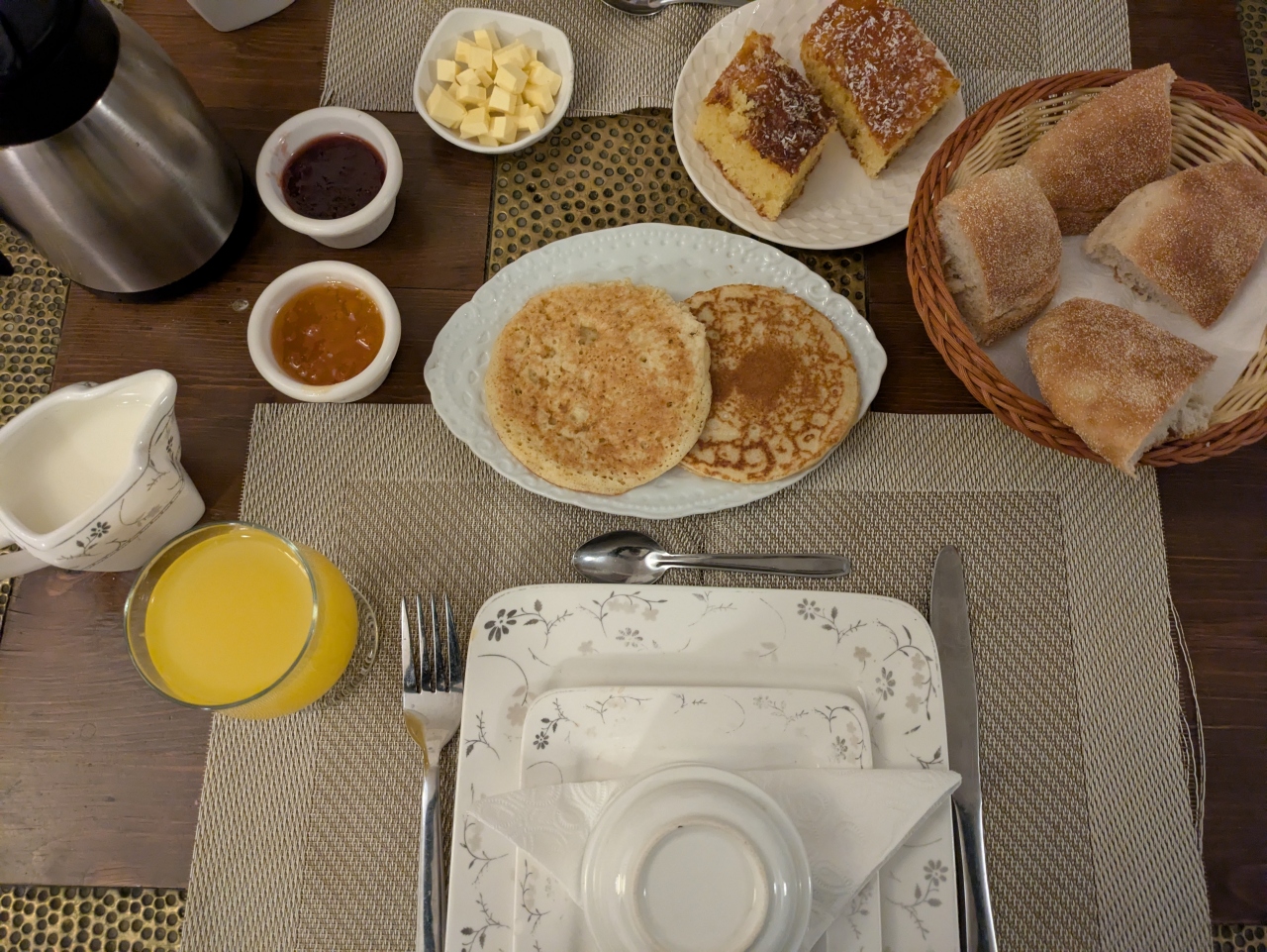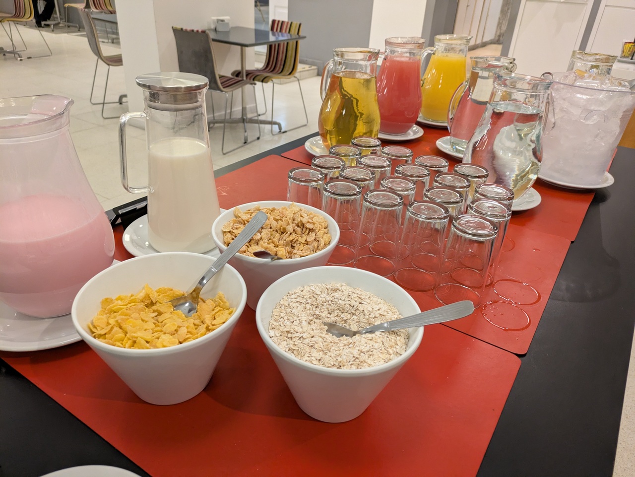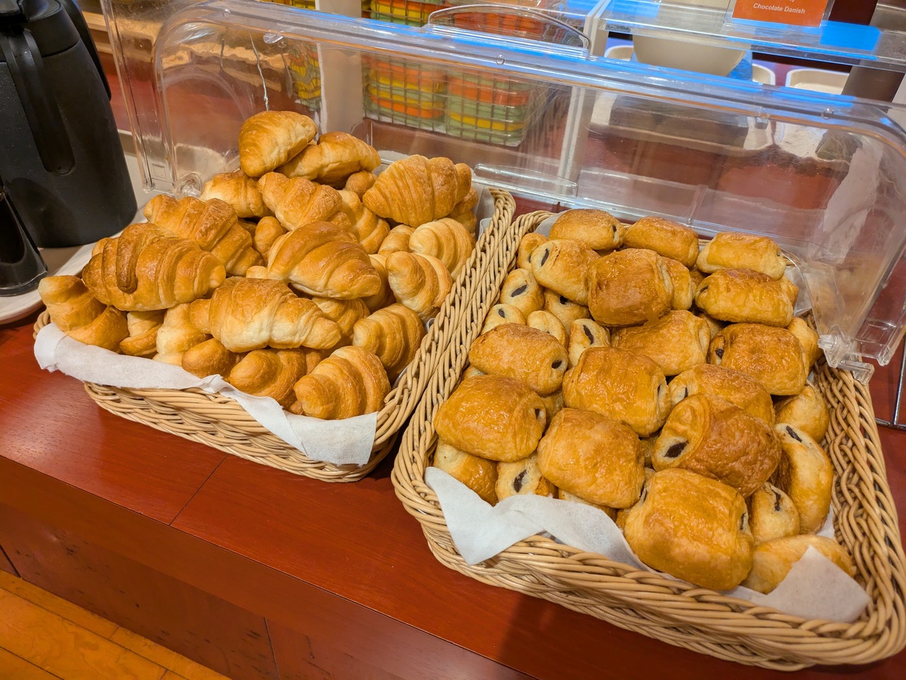 朝食は甘いパン系が多く、ホットミールはスクランブルエッグとチョリソーのみでした。滞在中2日間とも同じメニューでした。