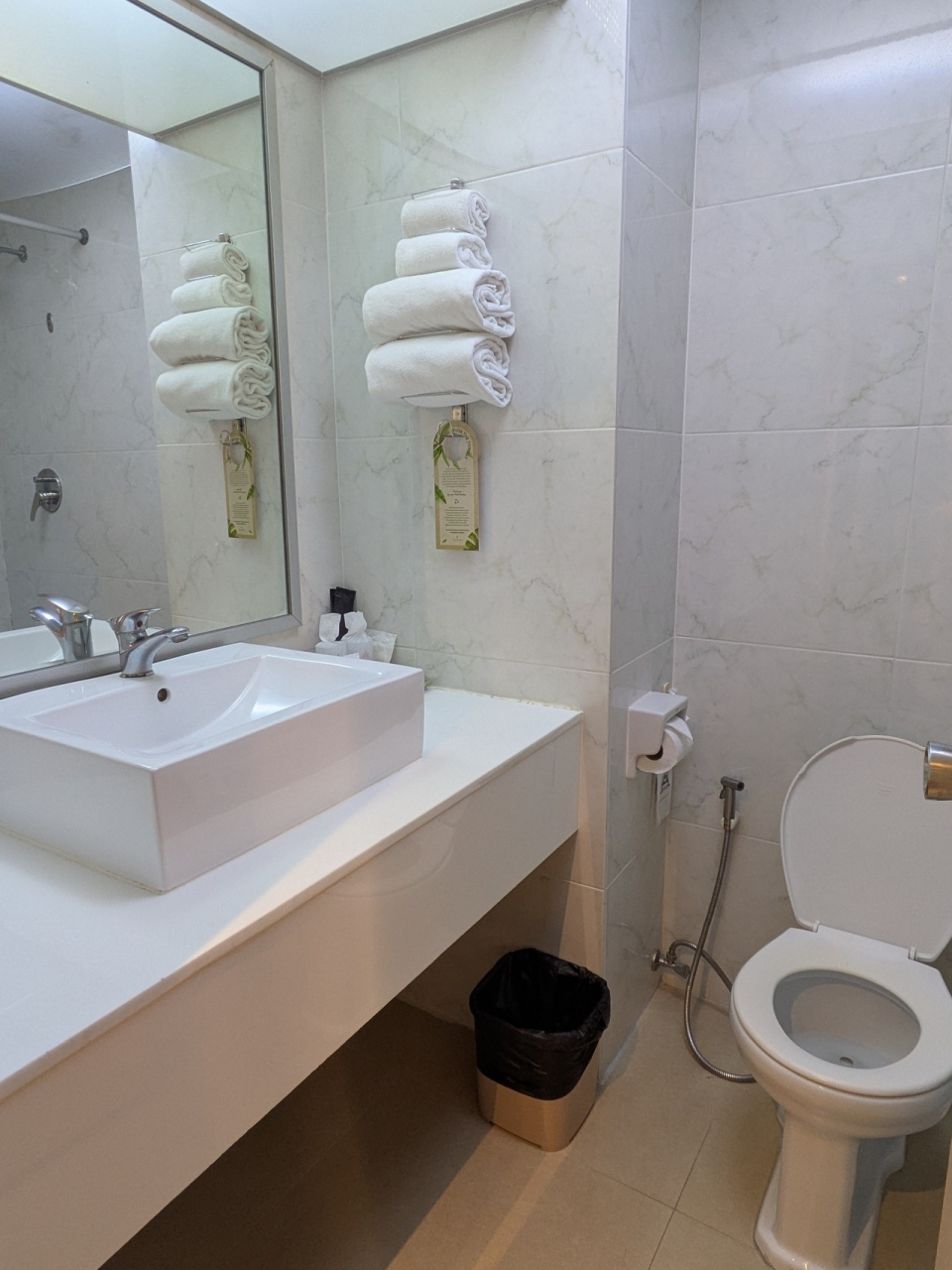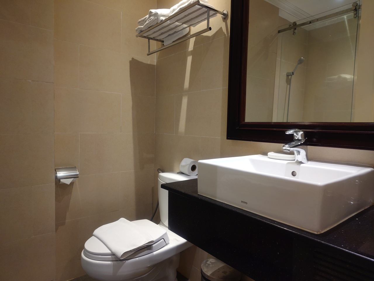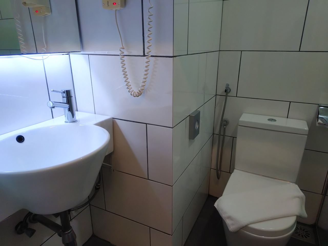 バスルームも狭く洗面台も小さいです。シャワーの温度と水圧は良かったのですが、排水が遅く水が溜まりました。下水臭はありませんでした。