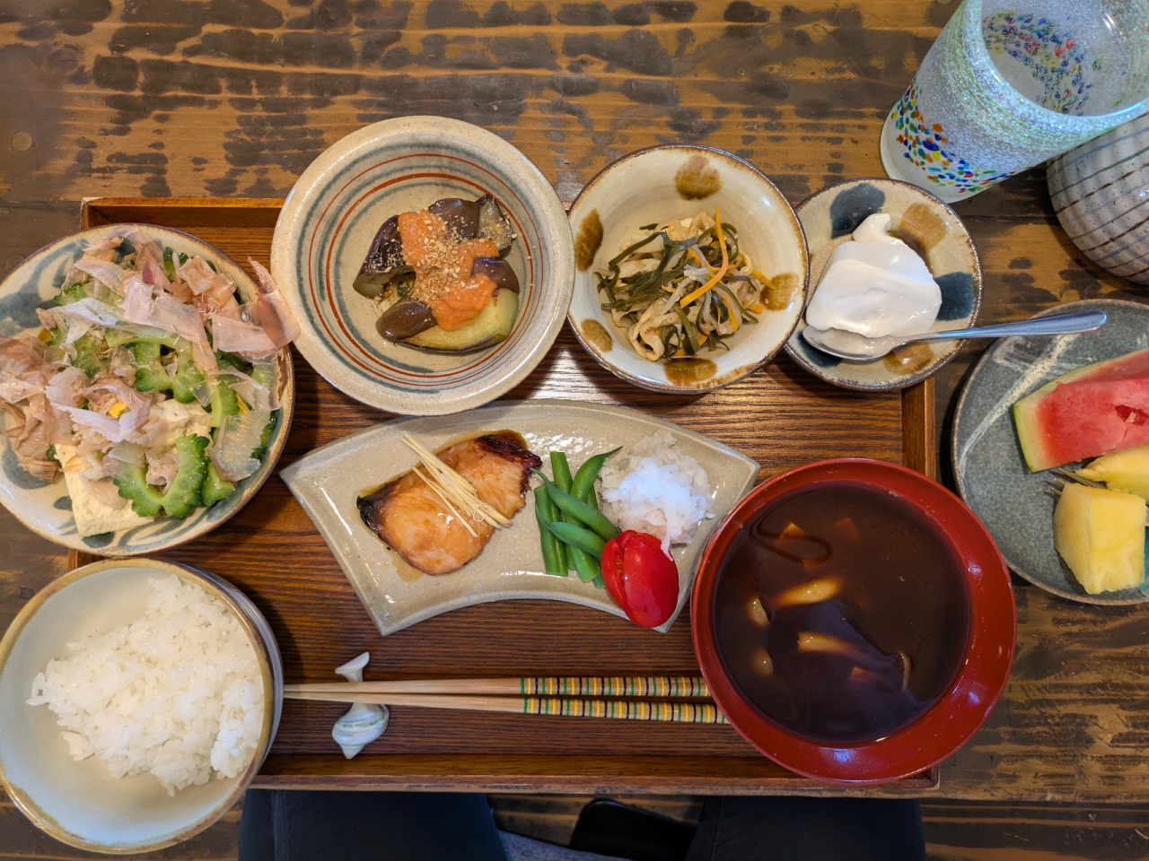 夕飯と朝食が美味しくてお勧めです。地元の食材を使った沢山の種類のおかずがでてきます。
