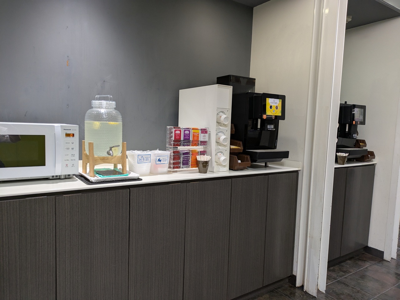ロビーにはコーヒーやティーパックが置いてあり飲む事ができます。