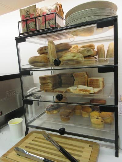 朝食がついていましたが、パン、ドーナッツ、マフィン、ワッフルとドリンクとヨーグルトのみ。ホットミールはありませんでした。