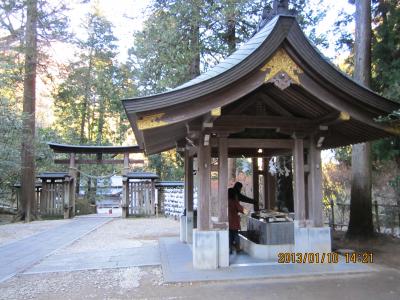 美里ゴルフ倶楽部でゴルフをした後に自動車で行きました。初詣の時は渋滞する道も時期を避ければすいすいです。門をくぐるといろいろな建物がところどころにあり説明も付いています。奥の山に登ることもできました。