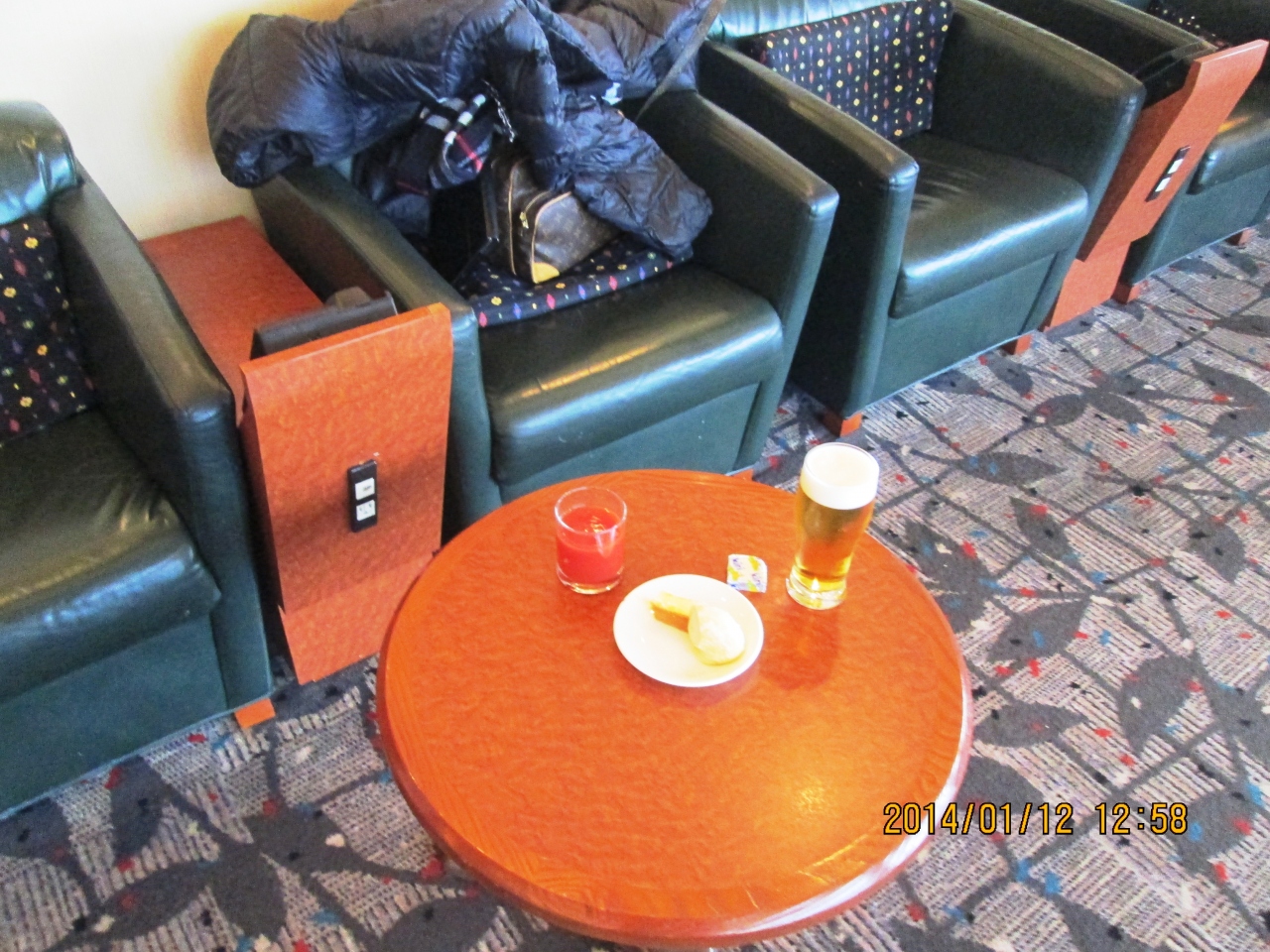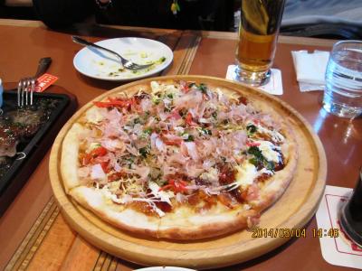 羽田空港に行ったときに遅い昼食で寄りました。料理飲み物とも値段は結構高い部類に入ると思います。ビール小グラス630円黒ビール小グラス690円お好み焼き風ピザ1280円海老アボガドサラダ980円サーロインステーキ1380円全部で4960円でした。キャンペーンくじをやっていて2等の1000円食事券が当たりましたが、次回の午後5時以降の利用とのことで使うことができるかどうかは疑問です。その場で使えるなら最高なのにね。