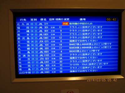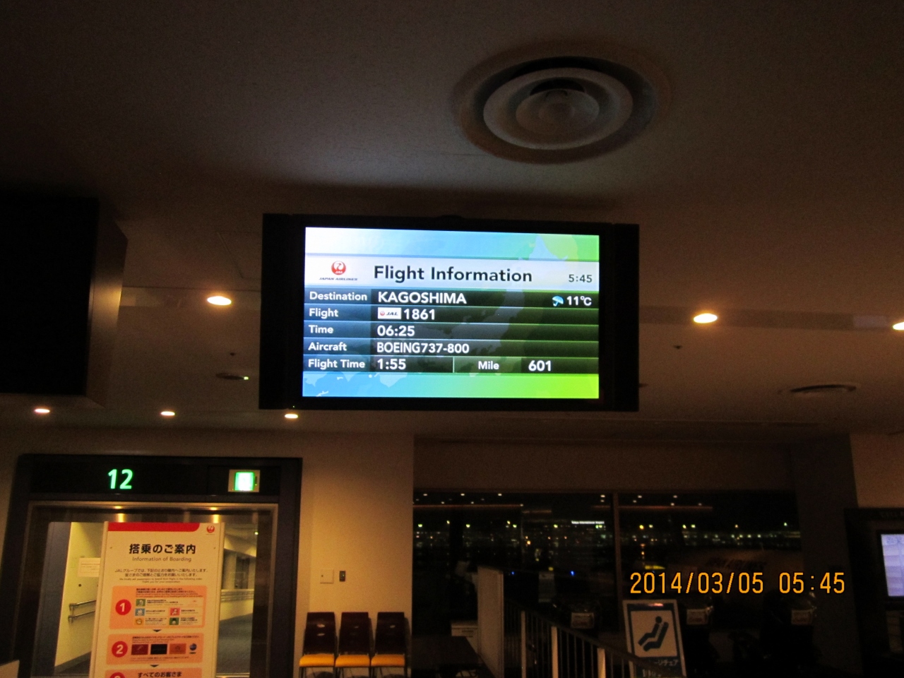 JALで鹿児島県に行くため羽田空港第一ターミナルを利用しました。午前6時25分発だったため早めに空港に到着しましたが、お店などはまだ開店してなくラウンジも開いていませんでした。6時になってやっと売店が始まり朝食のサンドイッチを買いましたが、朝早い便に乗るときは、朝食はなるべく済ませておいたほうがいいみたいです。