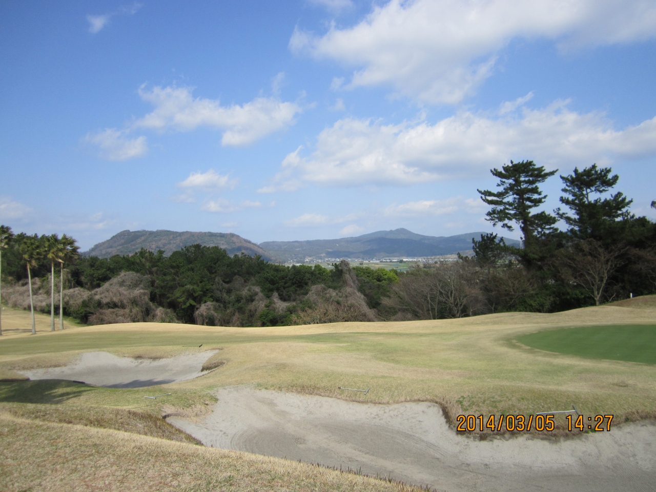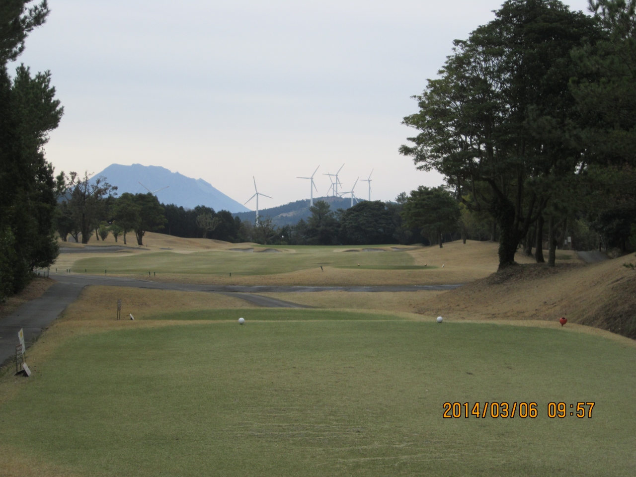 羽田発6時25分の飛行機で鹿児島空港へ、レンタカーを借りて高速道路とスカイラインをひた走りやっとコースに着きました。昼食を先にとりスタートです。景色の良いさすが以前のトーナメントコースだけはあるなと思いました。