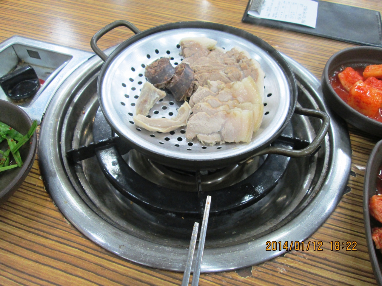 前回同様にまた食べに来ました。デジクッパよりもゆでたぶた肉のスユが食べたかったのでスユの定食にしました。もちろんスープも付きます。一緒に出てきたキムチが非常においしくて辛いのですが全部食べてしまいました。