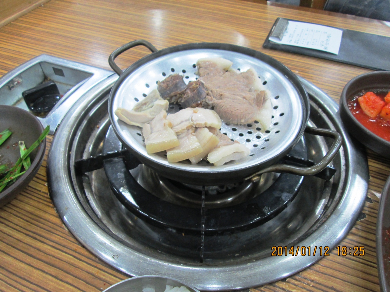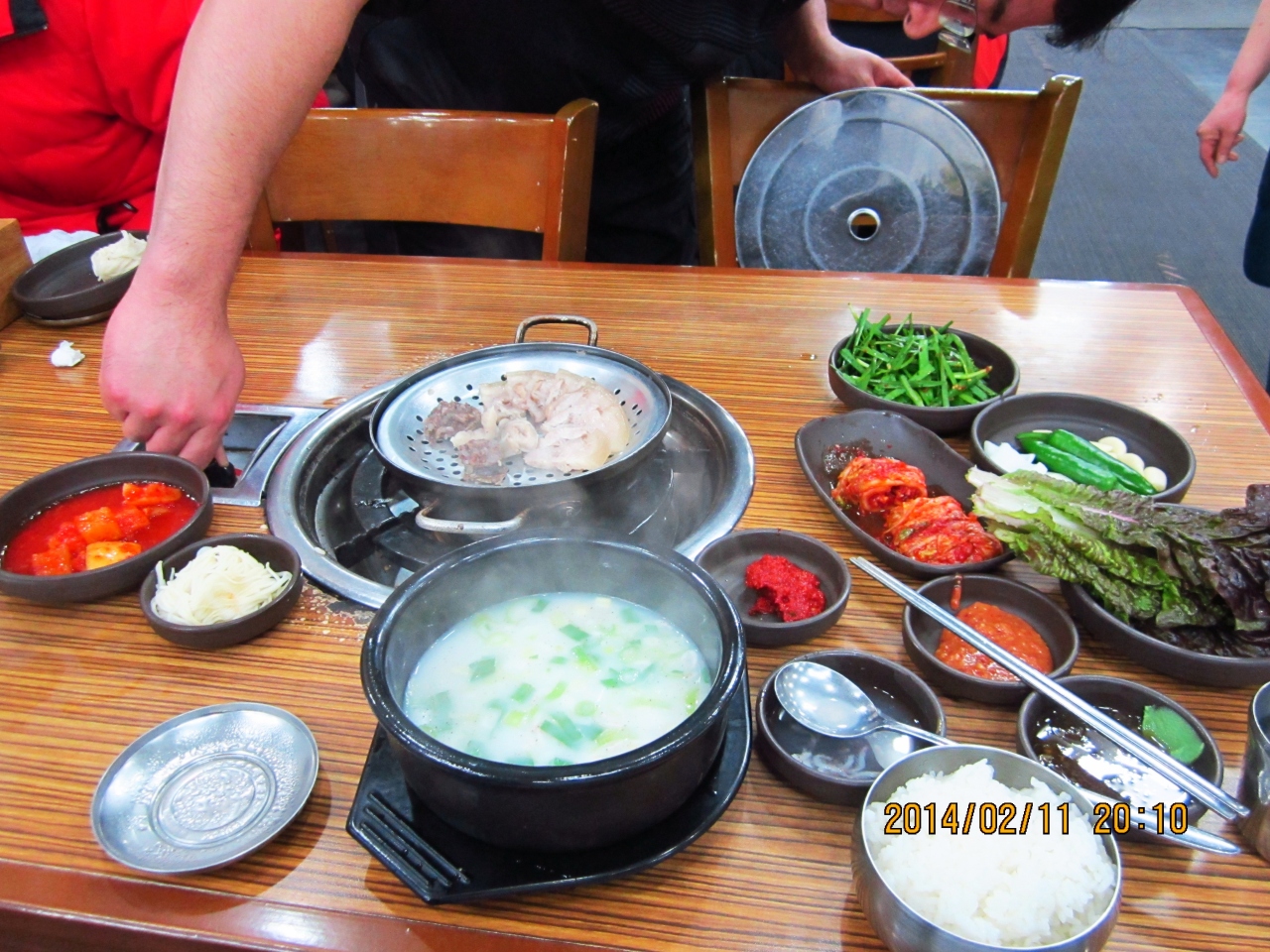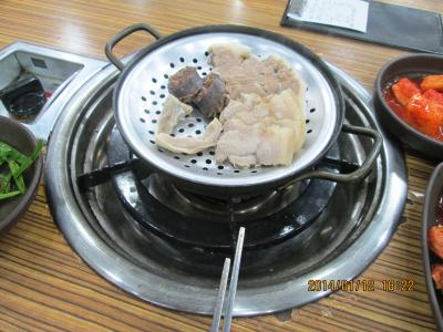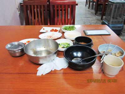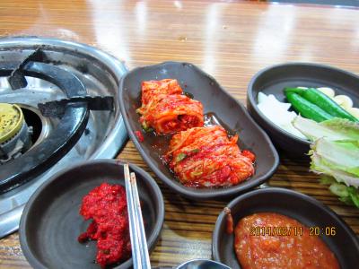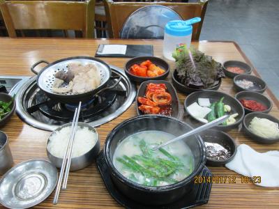 デジクッパ通りに数軒並んでいる内の一つです。茹で豚定食を食べました。ちゃんとスチームで温めて食べられます。スープには、にらを入れてアミで味付けを調節していただきます。葉っぱにぶた肉と生ニンニクなどを巻いて食べてもおいしいです。キムチが特においしかった。