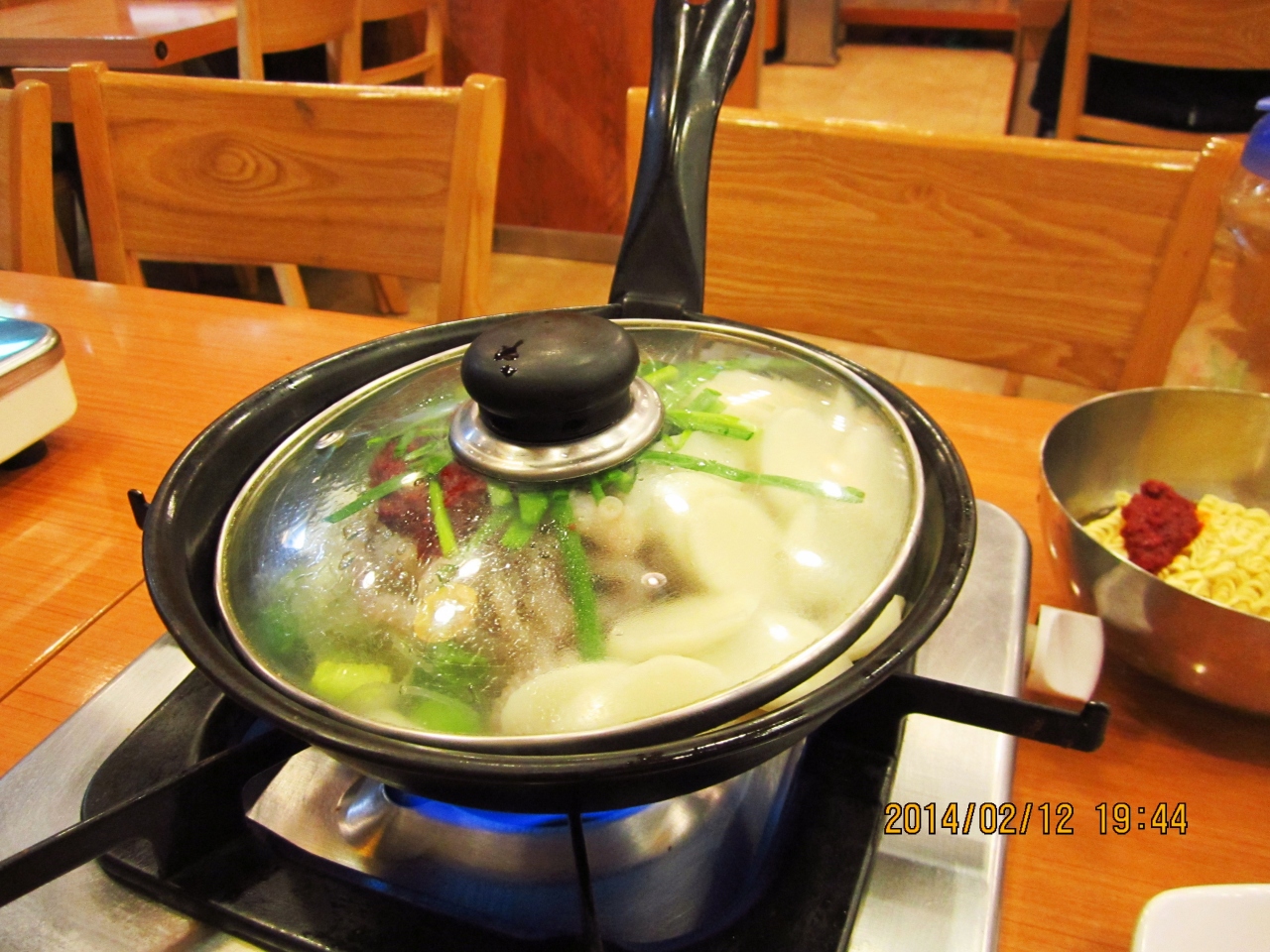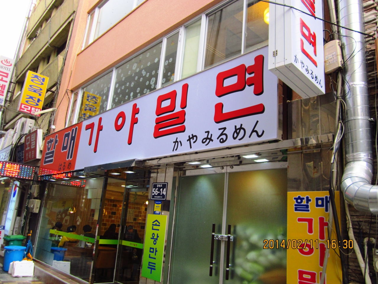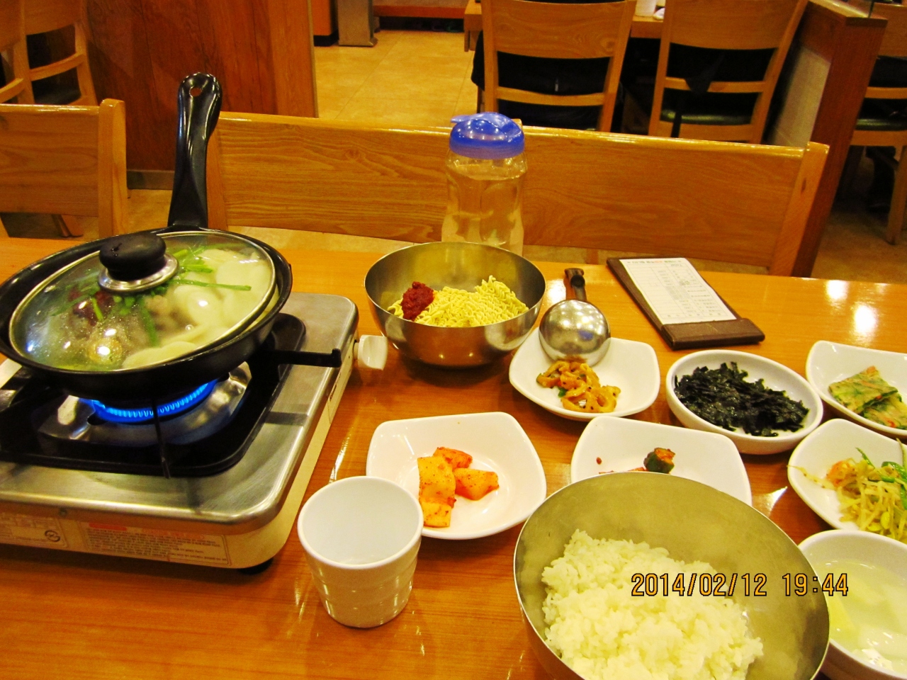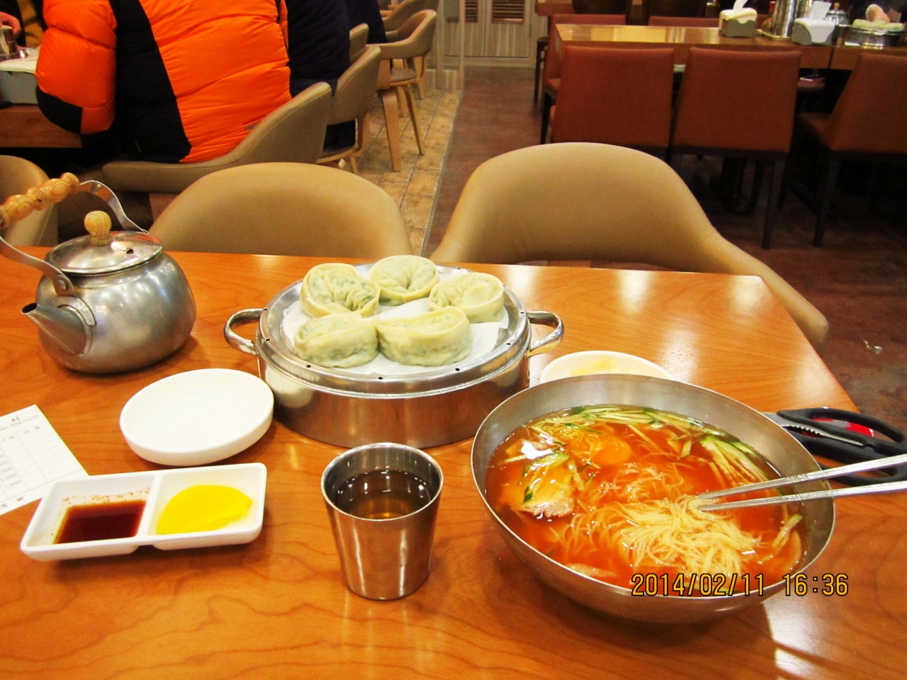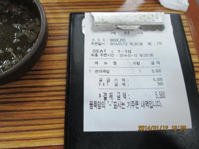 前回2013.11.21に行ったところ改装中でした。今回全く新しくリニューアルされてきれいになってました。相変わらず混んでいましたが、味は以前と変わりなくおいしいミルミョンとマンドゥを頂きました。ミルミョン5000ウォン、マンドゥ3500ウォンでした。