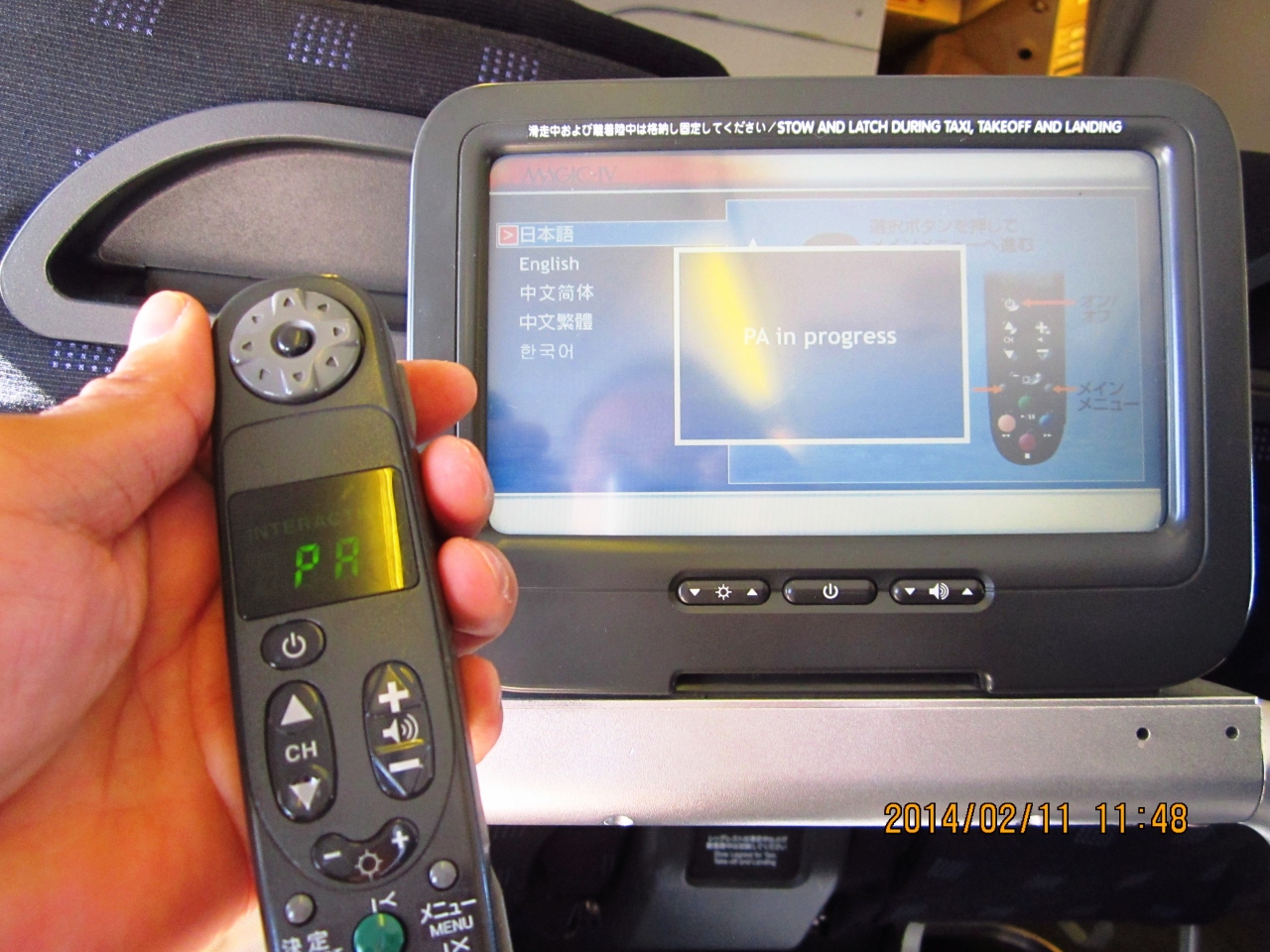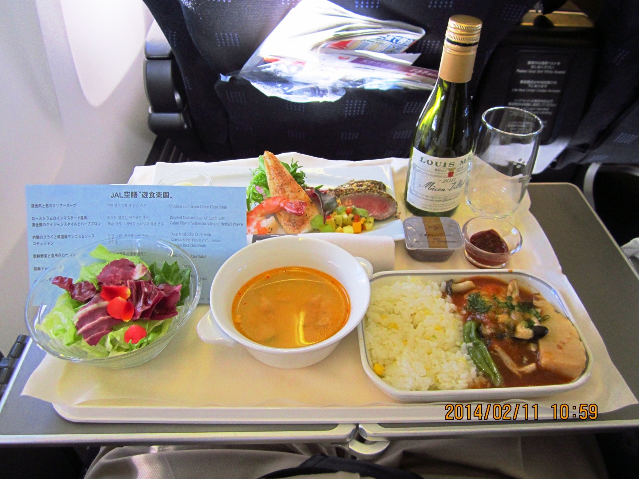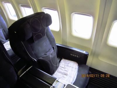 2014.02.11 成田発プサン行き JL957便に乗りました。FastTrackを通過してサクララウンジで過ごします。ワンワールドの他のラウンジ巡りをしようと思いましたが時間が足りません。食事をしゆっくり飲んでマッサージチェアーを利用していると搭乗時間です。機内食もおいしかった。エンターテイメントで映画を見ようとしましたが時間が足りなくてあっという間に釜山に着きました。