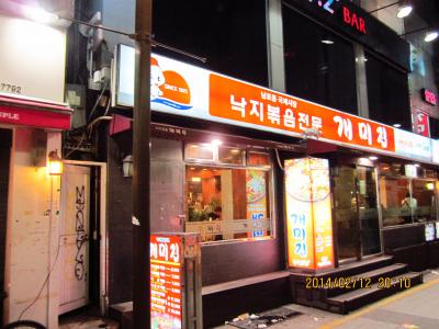 また行ってしまいました。今度は同じソミョンにあるいつもとはちがう別の店のケミチブ。メニュー値段システムなど同じでした。いつものようにタコ+エビ+ホルモン鍋にソリで韓国餅のトックとラーメンを注文。最初はラーメンは別のさらに入っていて上にはからそうな赤いものがのってます。鍋ができたらご飯の上にかけて食べると最高です。ころ合いを見計らって店員がラーメンを投入。ちゃんと作ってくれます。一人では多すぎるくらいですが完食しました。