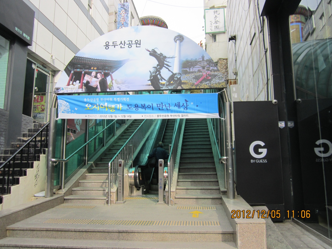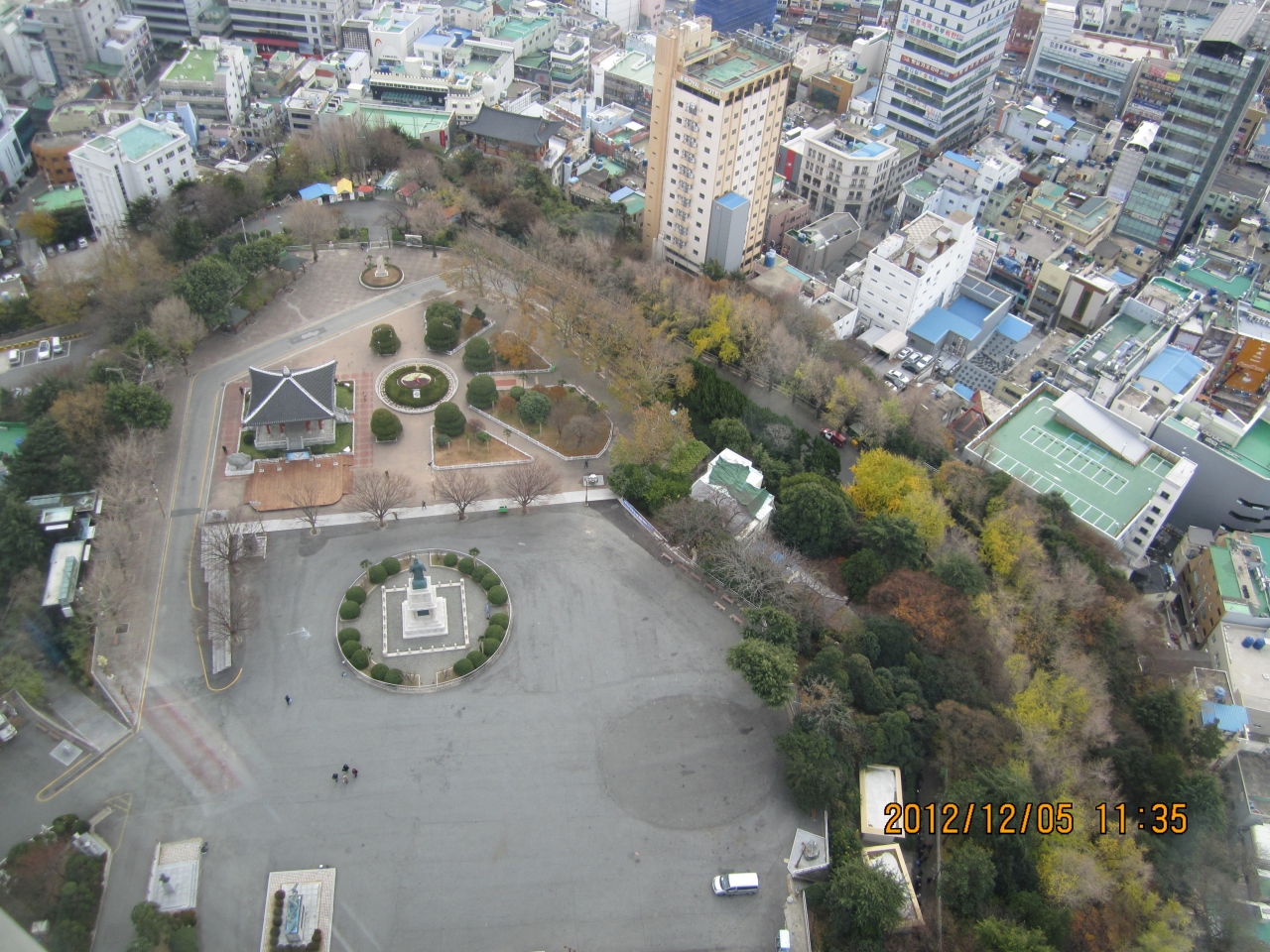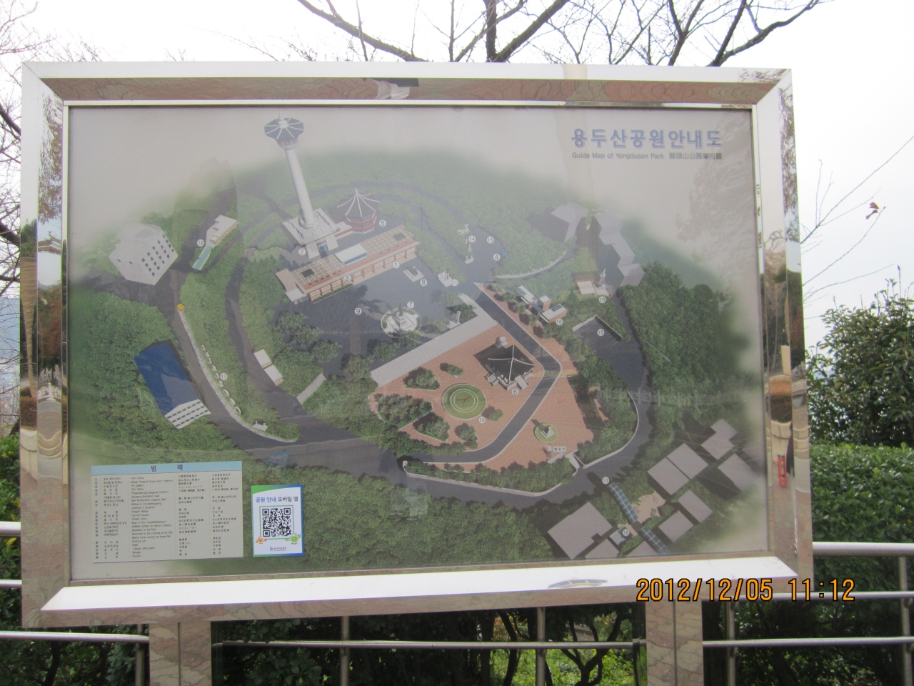 地下鉄のナンポドン駅を降りて歩いて5分くらいするとエスカレーターの入口に行けます。エスカレーターは上りだけです。屋根が付いてるので雨の時は助かるだろうなと思いながら乗ってると途中乗り換えが2度ほどあり結構長いです。最後のエスカレーターは故障していたのか動きませんでした。30段くらい階段を上りました。公園につきます。地元の人が体操してたり、観光客目当ての写真を撮って売る人がいたりします。公園を進むとタワーの根元に入場券を売ってます。一人4000ウォンでした。中に入るとエレベータで登り最上階一つ下のカフェテラスみたいな椅子のあるところです、最上階の展望台には狭い階段で上がります。360度見晴らしはいいです。あいにく曇り空でしたが結構よく見えました。タワー内にはトイレがないので下まで降りなくてはいけません。上る前に済ませておいたほうがいいです。