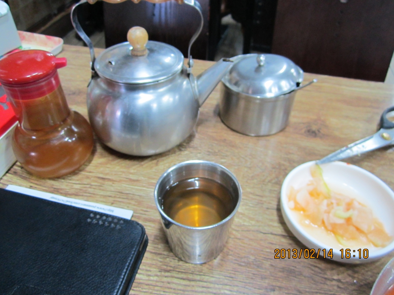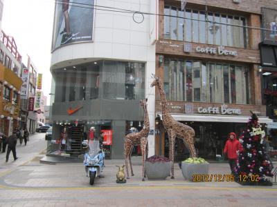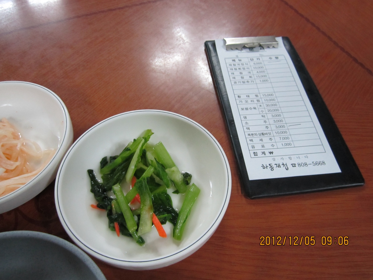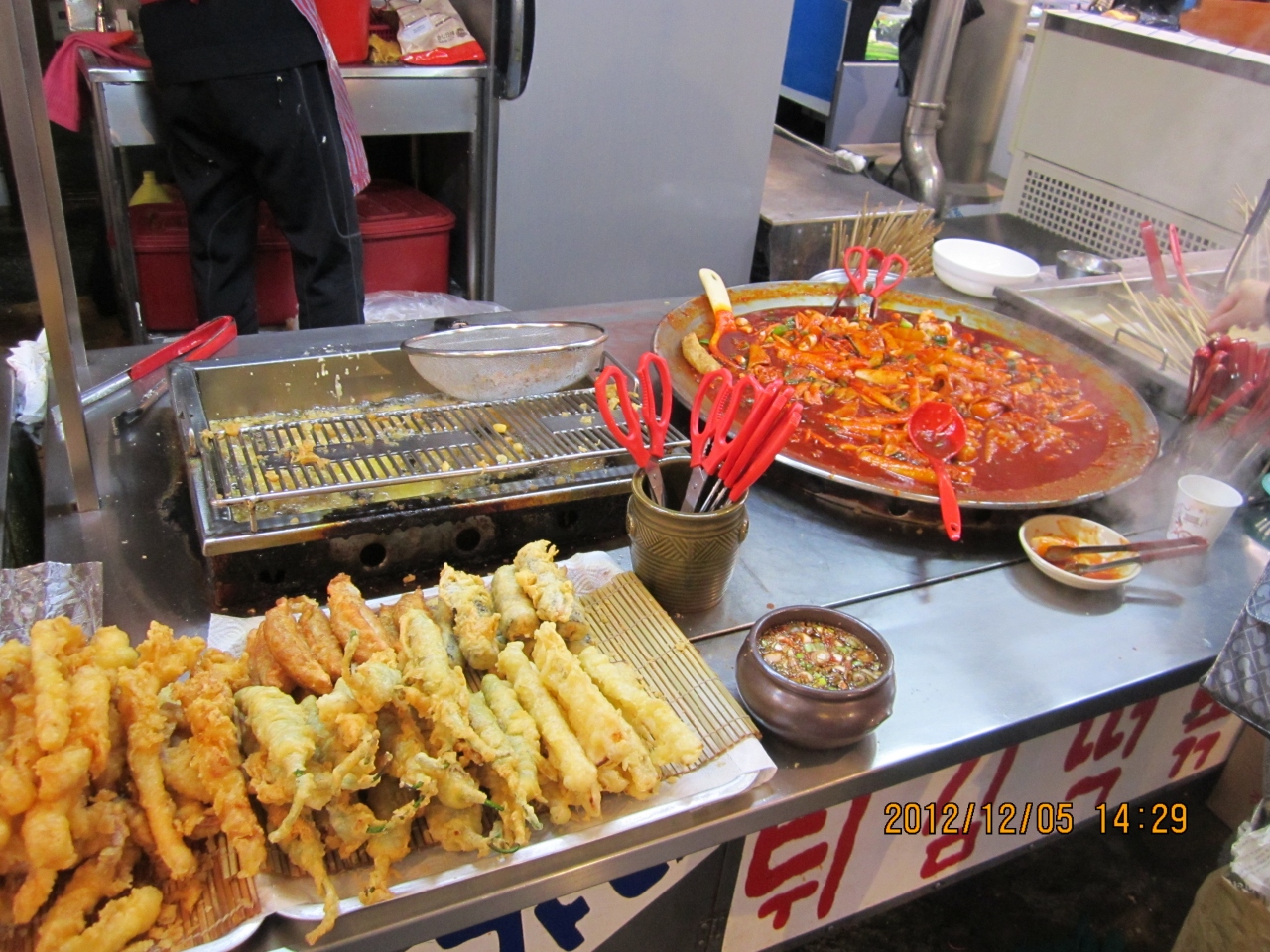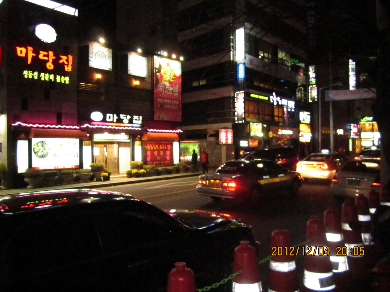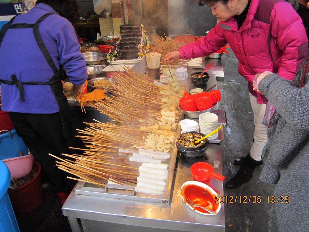 ミルミョンを始めて食べました。汁は真っ赤ですが、見た目ほど辛くなくお酢を入れてさっぱり食べられます。いっしょにやかんで出てくるコンソメみたいなスープがおいしくて冷え切った体を温めてくれます。大阪のメディアの取材の人が来ていました。撮影風景を見学できました。