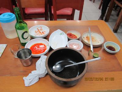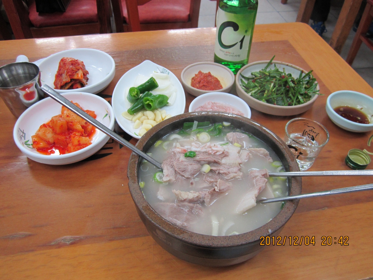 ソミョンのデジクッパ通りですぐわかりました。一人でも入りずらい雰囲気はありません。地元の若い女の子のグループがいたりしてました。臭みがあるのかなと想像してましたがそんなことはなくうす味でした。塩などで調節しておいしくいただけました。ソジュC1と合計で10000ウォンでお釣りが来ました。安いですね。