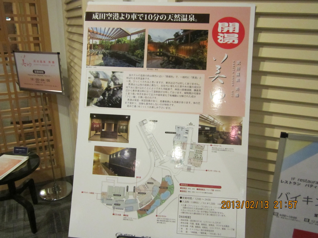 格安のLCC、エアアジアジャパンのキャンペーンで成田ープサン往復のティケットを8,600円で購入でき、出発が午前8:05のため空港に朝行くのはきついので成田ビューホテルに前泊しました。なんとLCC対応のチェックアウト午前6:30までの企画があり一泊素泊まりで3,300円です。ホテル内に温泉がありその名も「美湯(びゅゆ)」とのこと。宿泊者は1,500円のところ1,000円です。お湯はあまり熱くなかったけど色が真っ黒でものすごく「温泉だ」と主張してました。部屋はダブルベットで広くて快適です。ただ禁煙の部屋ではなかったので非喫煙者の私には、たばこのにおいが少しきつかった。部屋も掃除はされていますが古い感じは否めません。この料金では文句は言えません。コストパホーマンスが最高です。自家用車で行きましたが、宿泊者は15日間駐車料金が無料です。成田空港ホテル間は無料のシャトルバスが定期的に出てます。非常に便利です。また利用したいと思います。