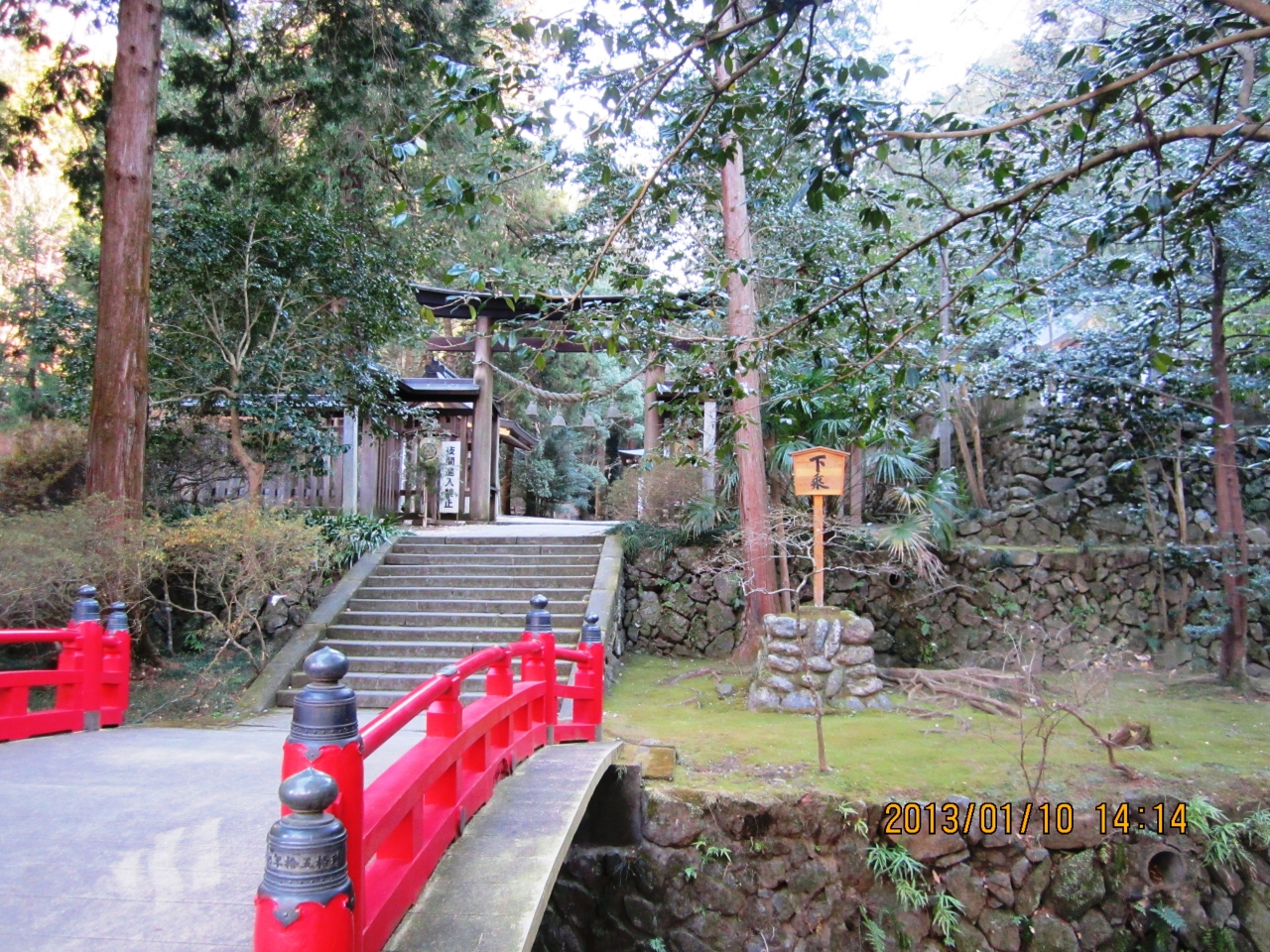 美里ゴルフ倶楽部でゴルフをした後に自動車で行きました。初詣の時は渋滞する道も時期を避ければすいすいです。門をくぐるといろいろな建物がところどころにあり説明も付いています。奥の山に登ることもできました。