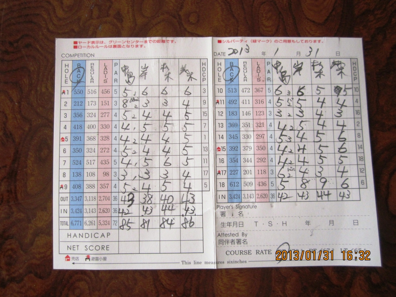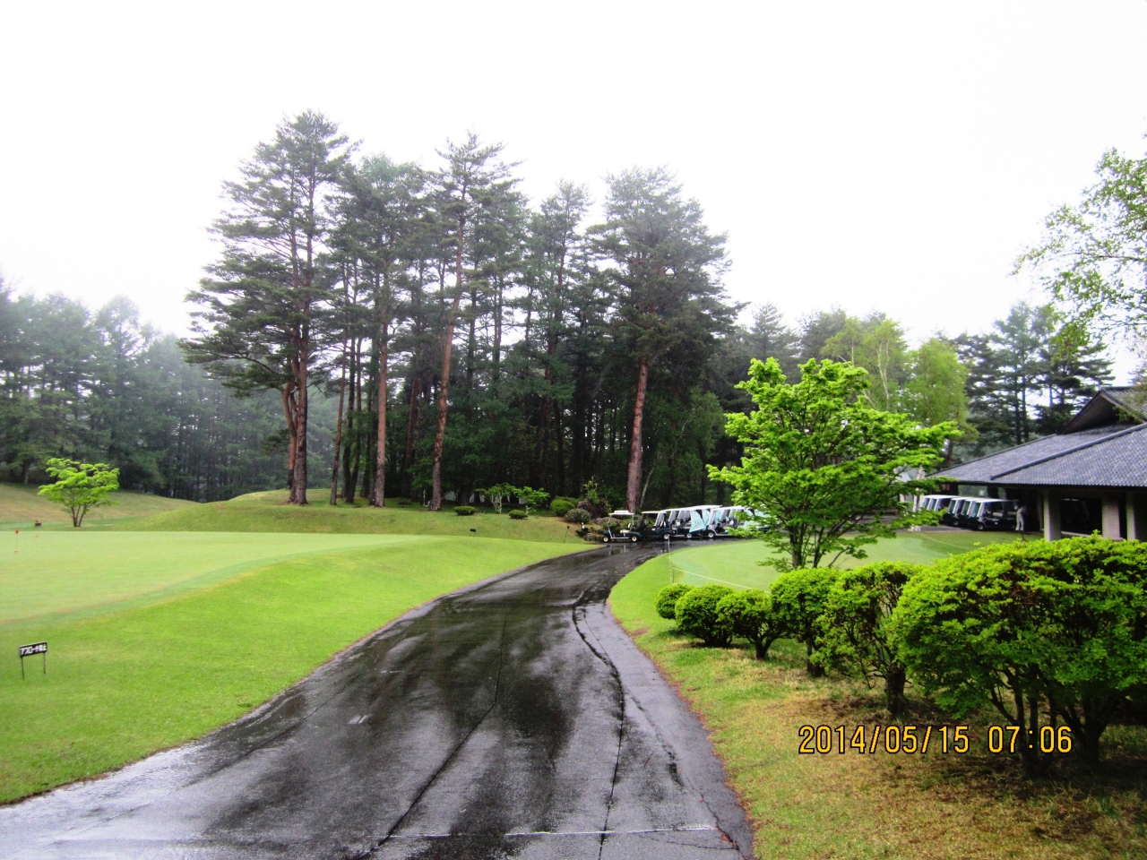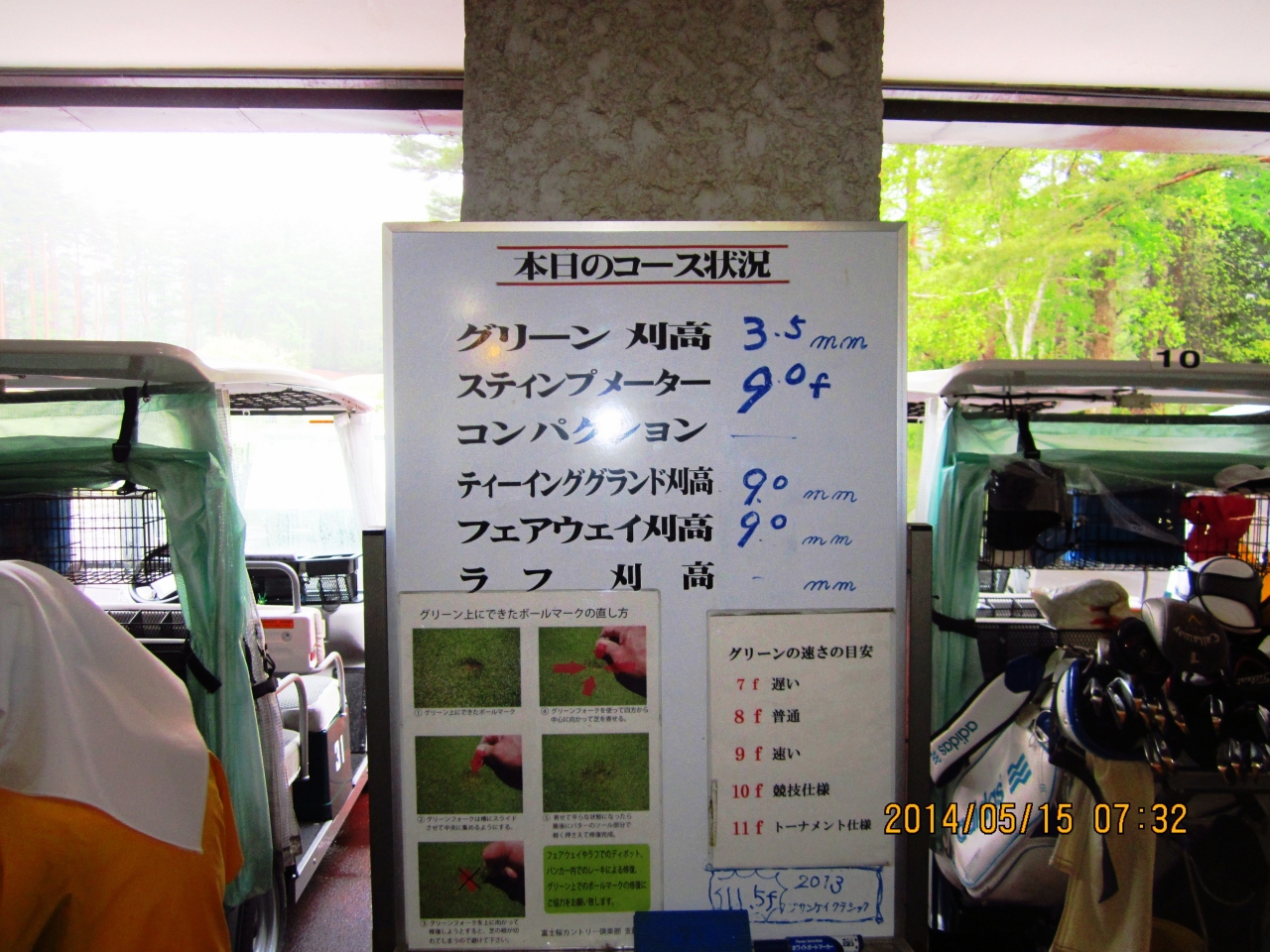 群馬県から関越自動車道・圏央道・中央道経由で河口湖I.Cで下り15分くらいで着きました。あいにく天気は雨模様で富士山は全く見えずグリーンの芝目が富士山から順目と言われてもさっぱりわかりません。バックティーからは距離がとても長くてグリーンで手こずらされてさすがはトーナメントコースで難しかったです。