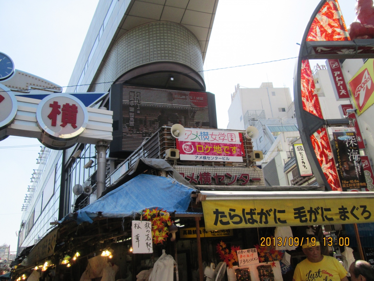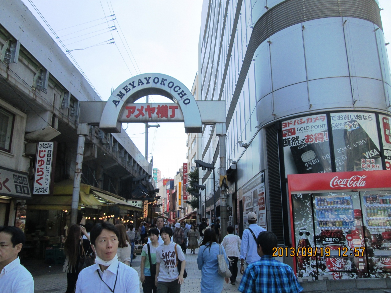 2013.09.13 JR上野駅からアメヤ横丁を散策してJR御徒町駅まで行きました。毎年、年末では満員電車の中のように真っすぐ歩けない状態ですがこの時期は適当な混み具合でした。外国人特に中国の人が多かったです。