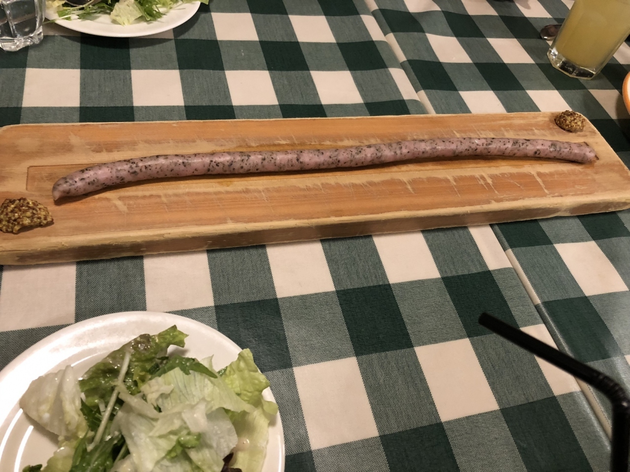 ソーセージは、かなりの長さがあるロングソーセージです。子供もおおよろこびでした、