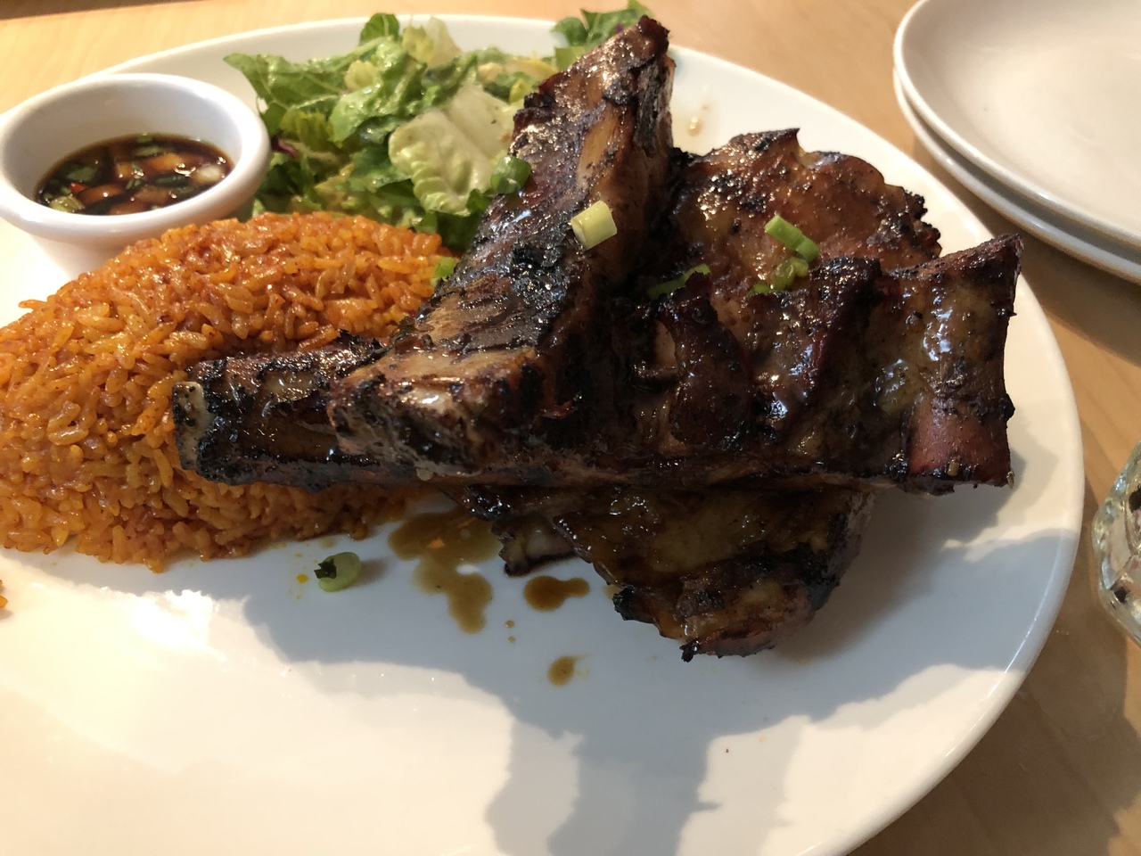 お料理は有名なバーベキュートリオとポークステーキを注文。ポークも美味しいのですが、ここはバーベキューを頼むのが正解なお店です。
