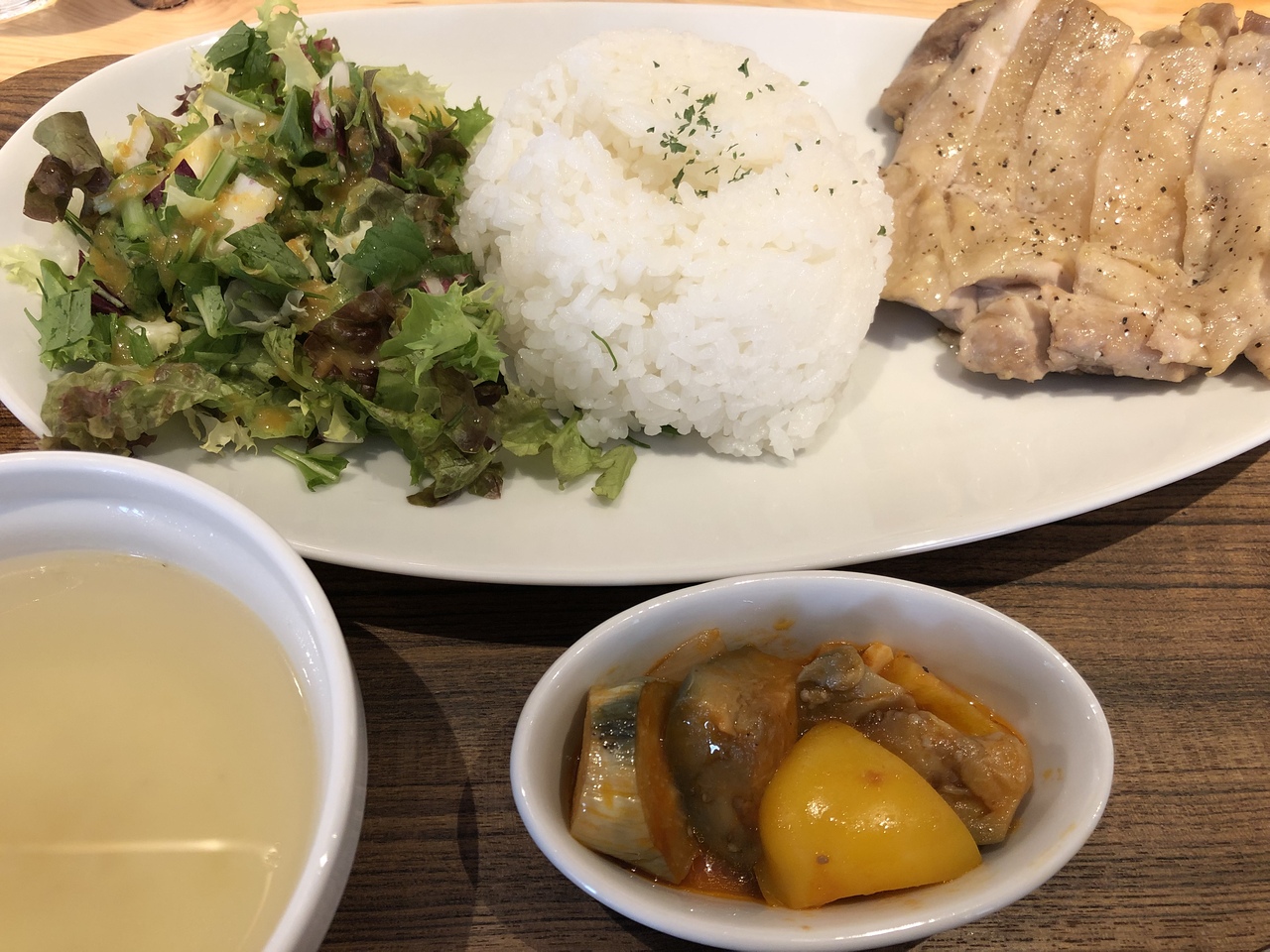檸檬食堂さんをランチで利用。その名の通り檸檬づくしです。全体的にメニューは女性向けのものが多く、その中でも鶏肉を選択。檸檬と塩でさっぱり惜しいかったのですが、変化が少ないのでやや最後飽きが来てしまいました。