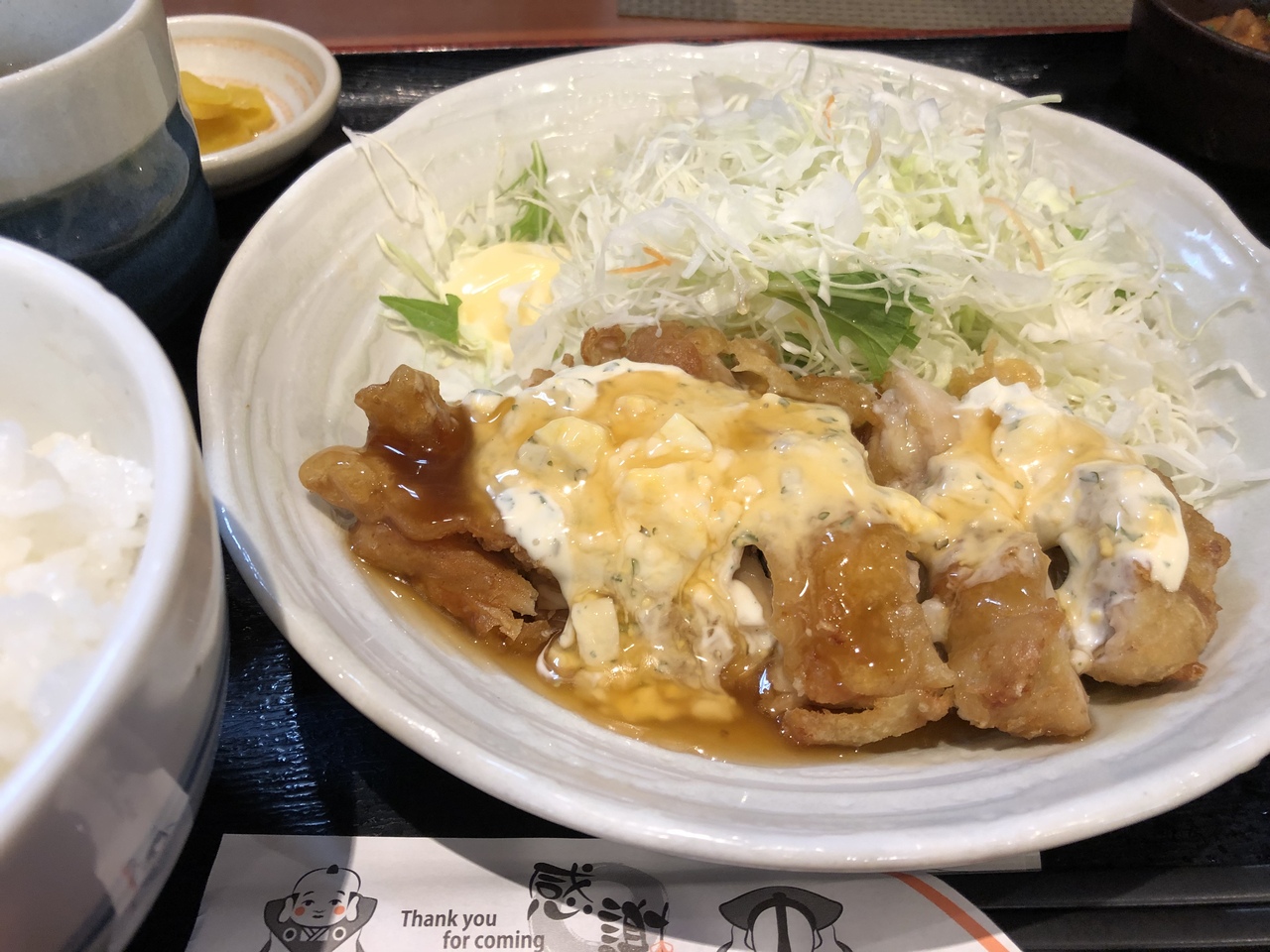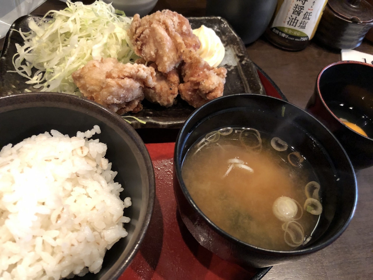 今回食べたのは唐揚げ定食。ご飯も結構ありました。味は、ファミレス味です。お腹いっぱいで安く早く食べられるお店です。- 旅行時期