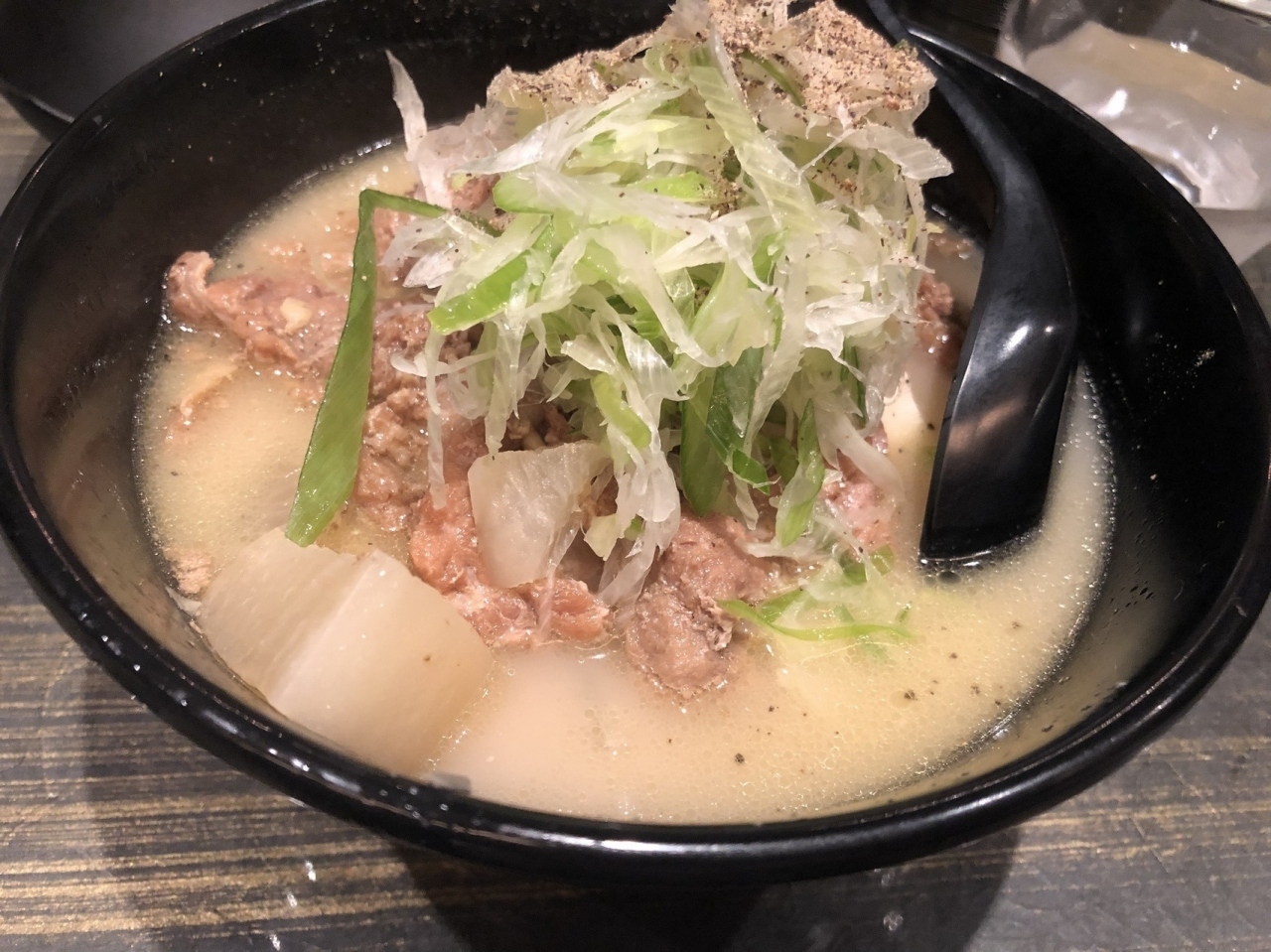 メインの牛すじ煮込みは、しっかり煮込まれててスープが白濁濃厚、合わせた大根もしっかり味。胡椒が効いてて美味しかったです。- 旅行時期
