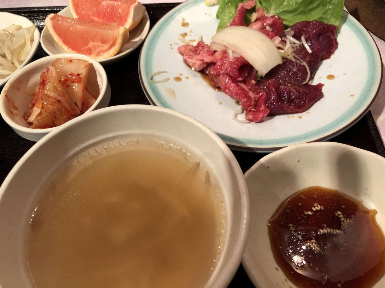 お肉の量によりますが、千円前後で食べられるのでお得。もやしなどの野菜、ご飯、おみそしるが食べ放題。