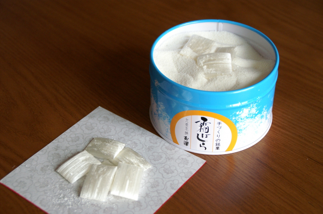 その名の通り見た目も食感も(?)霜ばしら。でもこれは飴です。ひとつひとつ手作りで、霜と同じく縦糸を撚り集めたように見えるのは空気穴が縦に128本も通っているのだそうです。だから舌にのせるとかしゃかしゃかしゃと溶けていきます。壊れやすく湿気やすいので、落雁粉の中に埋もれています。宮城に霜がみられる10〜4月までの期間限定の銘菓です。地元でも隠れファンが多いらしいです。はかないほどに繊細なこの飴を一度試して見て下さい。1缶買うと結構大勢で楽しめますよ。