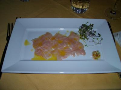 11月にオープンしたばかりのレストランです。イタリアンレストランって割と隣の席が近くてズラッと並んでいる印象が強くて「落ち着けないなぁ」と思うことがしばしば。でもここはとってもこじんまりとしたお店なのに大人の雰囲気でとってもくつろげます。1Fはカウンター席が占めますが2Fは女性一人でものんびり食事ができるテーブル席です。素材そのものの味を活かしたお料理で特に魚介類は最高です!グループ客がいるとすぐ満席になるので予約して行った方がいいと思いますよ~ ちなみに写真は金目鯛のカルパッチョです♪おいしかったぁ…