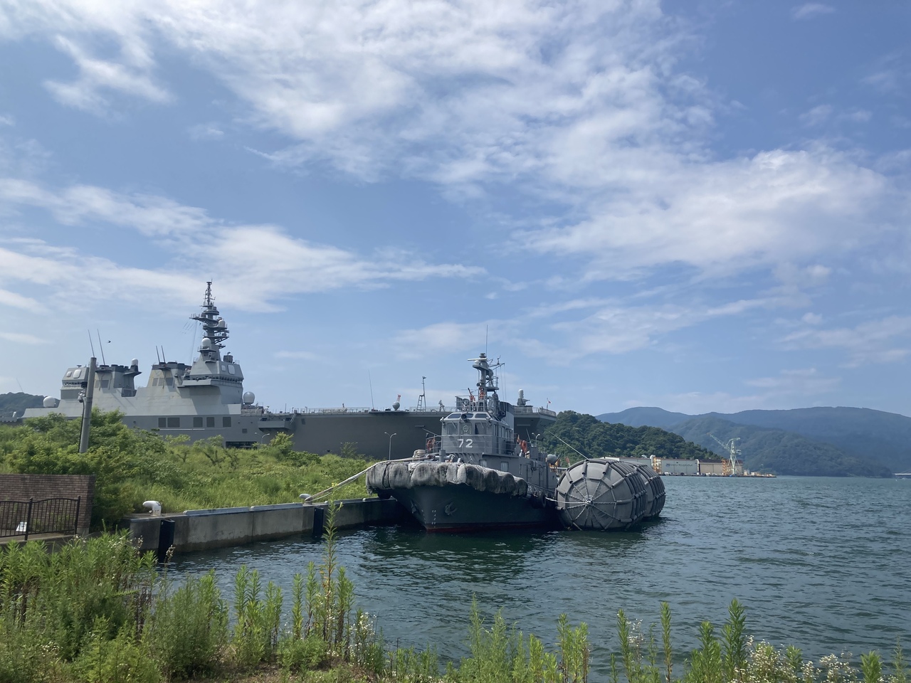 自衛隊のことや船のことは詳しくないので、何の船が停まっていたのかはよく分かりませんが、いかにも自衛隊らしい色の大きな船がすぐ目の前に停まっていて、圧巻です。